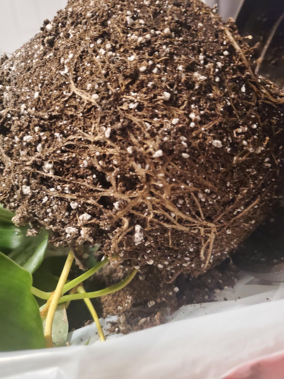 I don't think her roots have rotted because they aren't mushy, just wispy. I've had her a year. I watered her weekly in the growing season and biweekly in the off-season, with tropical plant food added to the water. I haven't resoiled her since I got her, and I was having an issue with scorched leaves until I made sure she wasn't getting direct sunlight, now I open the curtains for her but leave my light filtering shades closed. She is also in an 8 inch pot, that I got her in.