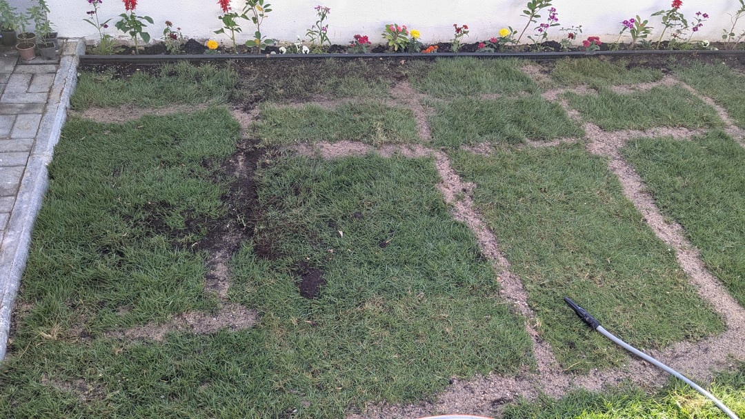 My local gardener filled up the gaps in my newly laid sod like this. In some areas he just left it right over the grass. He said just water it and it will be fine. Looks a bit odd to me. is this looking right? by faraz194 lawn care 1 Comment fractal324 9 months ago when I had my sod put it, it looked like a checkerboard with gaps in between each piece. I was told to water and eventually they will grow together. took less than a season for it to grow together, but my zoysia is quite aggressive in searching for purchase. Write A CommentYou must be logged in to post a comment.