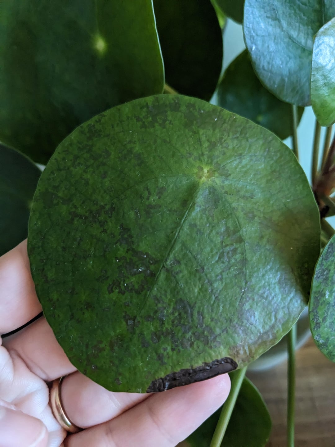 It was beside a monstera I had to throw out due to thrips, but the white spots here aren't thrips, they are attached to the leaf and don't come off when I rub.
