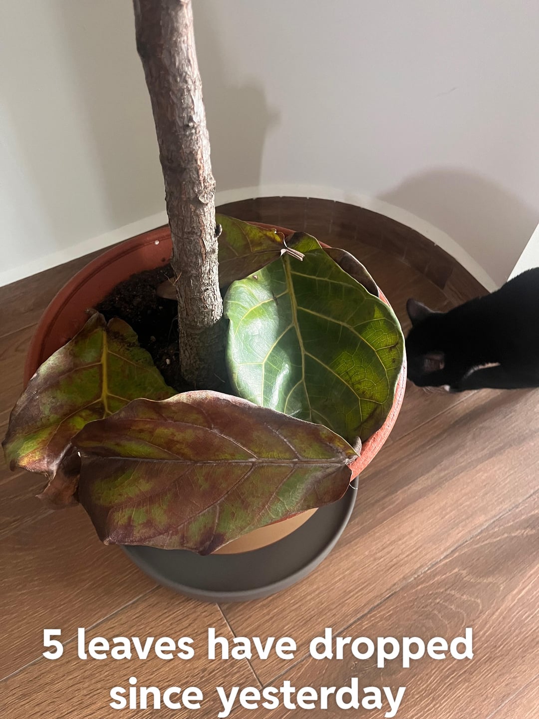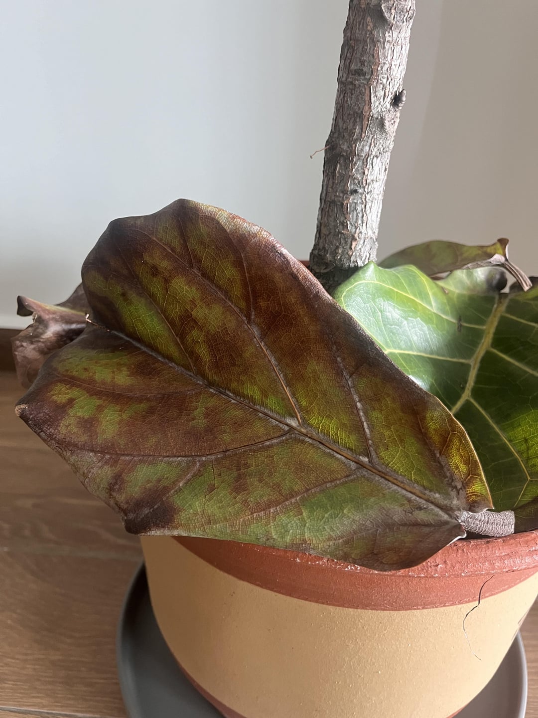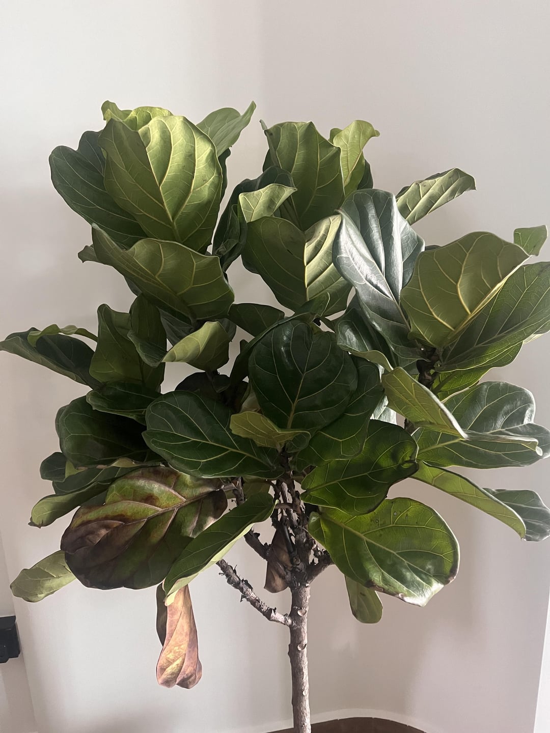 I’m a first time plant owner 😭 I got this Ficus Lyrata from the nursery 2 weeks ago and its leaves have turned brown and dropped really quickly since then. I looked up the internet and the result is always overwatering or underwatering. How do I know which is which? Since getting this plant I only watered it twice. It arrived at my place covered in dust, a lot of dust so I spent a good 30-minute wiping the leaves with a rag. My partner said I probably stressed out the leaves. Is it true? 😭 I really want to save this plant. Any ficus lyrata expert out there who can give me some advice? The plant is in a good corner where there’s decent indirect sunlight. I also live in a tropical country so no winter or harsh temperature to speak of.