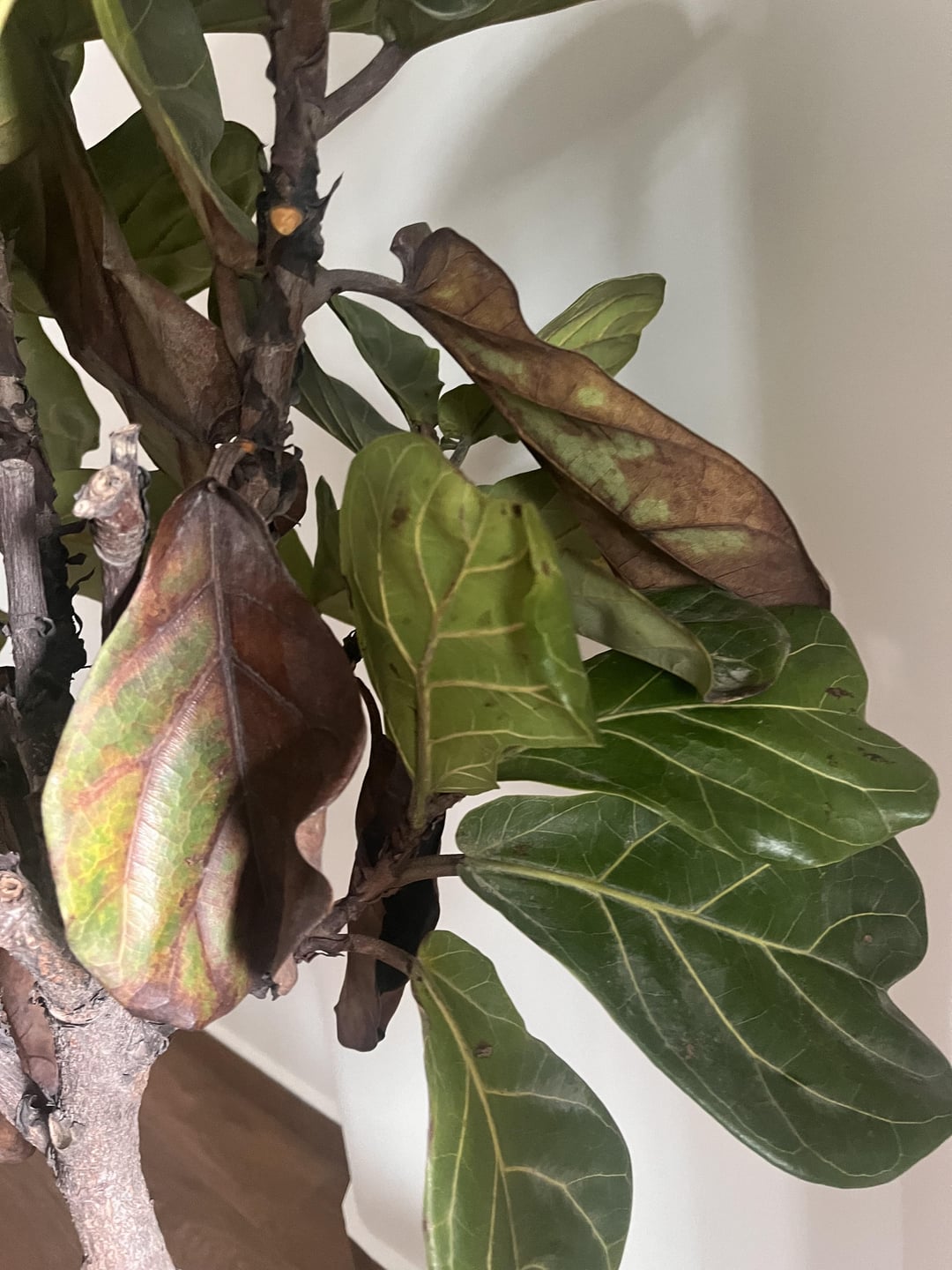 Probably to much water, I had this issue when I moving and watered heavy because it wouldn’t be there but it stopped once i had, I didn’t let it dry out enough. hopefully that helps good luck, beautiful fiddle fig btw mine is tall and lanky cause I didn’t think about topping it soon enough