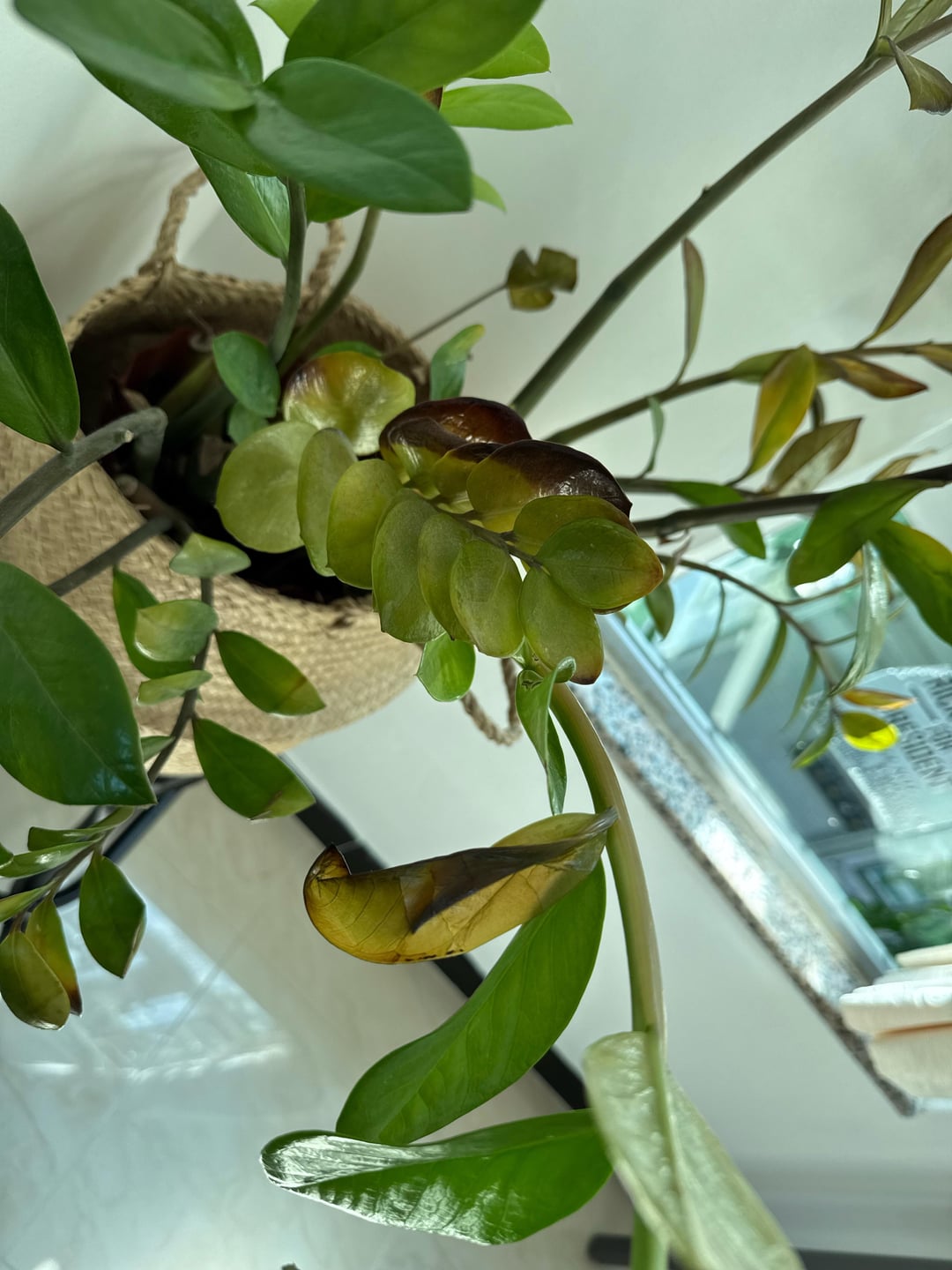 Too much water for ZZ. Not sure what the sunlight is like this time of year for the pothos but I’m assuming over watering there too