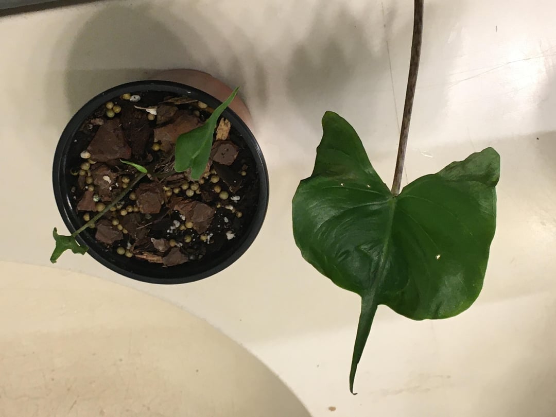 (Pic#4 is an example of a mature-sized leaf, next to a newly sprouted corm.)