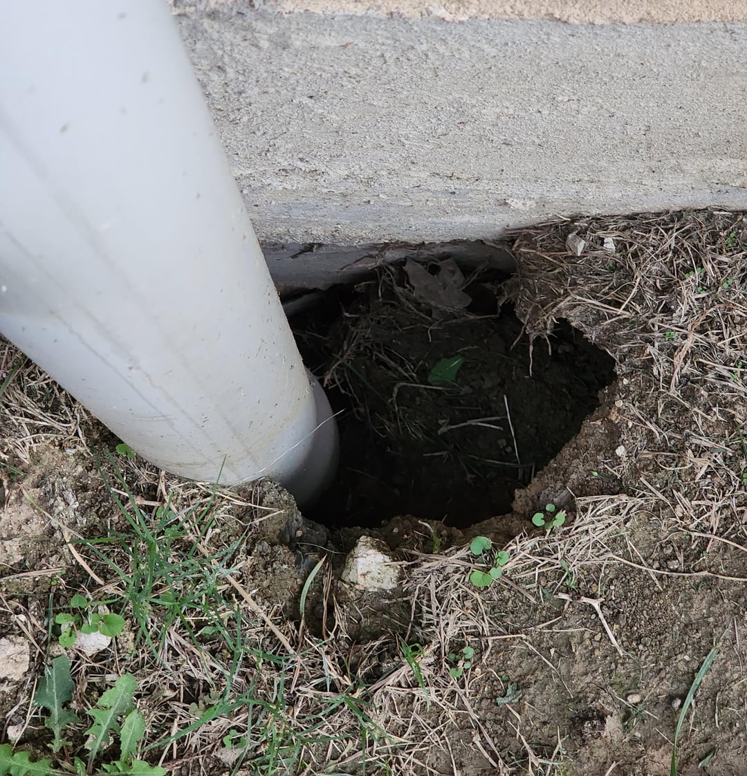 Hey all, i found this hole around the main utility pipe and i am not sure what caused this to begin with. Thankfully it has not gotten bigger over the course of few months of tracking. Im at a point that I need to fill this hole and start repairing my lawn so i can list my home.