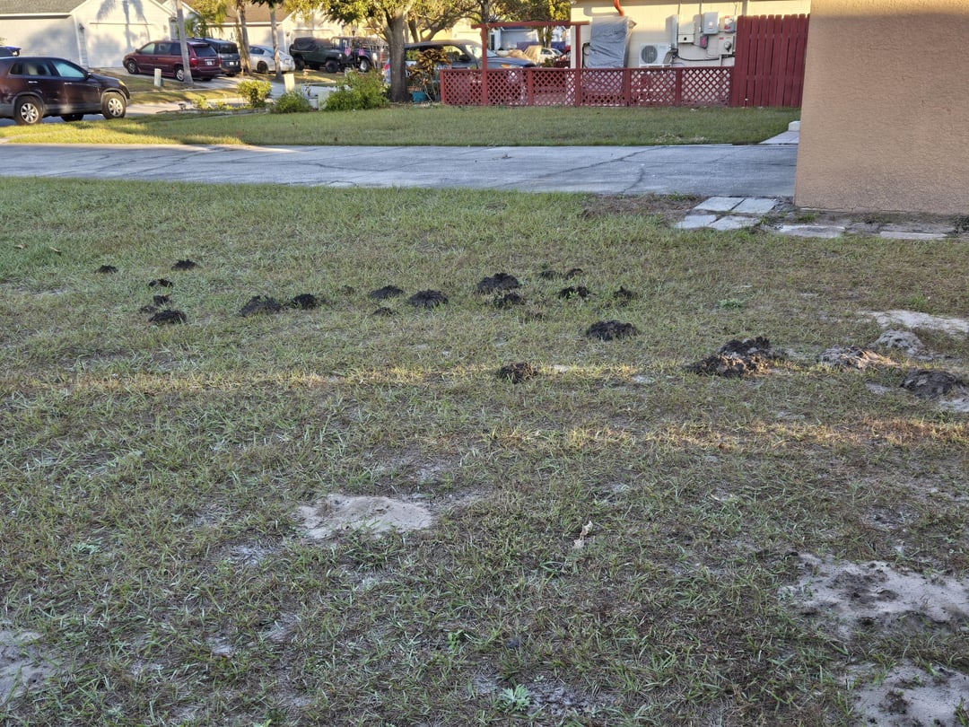 Let me start by saying I live in Florida. This is the second time this has happened in my front yard. I included images so you can see how the moles are spreading throughout my entire yard. Last time this happened about a year ago, I purchased these solar powered mole repellants that you stick in the ground and they make a kind of buzzing sound every 10 seconds which is supposed to annoy the moles and make them leave. Surprisingly it worked! Now a year later, they’re back. I tried sticking the mole repellants back in the ground but this time they don’t seem to care. I’ve tried having my dog go to the bathroom around the holes and that also doesn’t scare them away. I have contacted my pest control company, but the only option they have is to eliminate the moles and I really do not like to hurt animals even if they are destroying my yard. I am afraid they’re going to make it up into my landscaping pretty soon and then maybe even underneath the foundation of my house (if they can, I’m not sure if that’s possible or not). Any help that does not involve harming the moles but would make them leave my yard would be greatly appreciated!