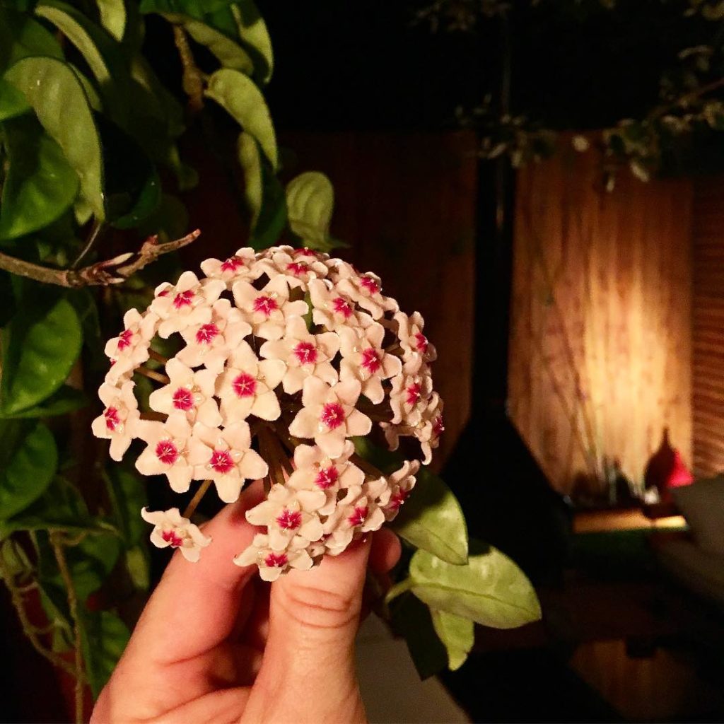 Hoya carnosa ‘Krinkle Kurl’ 😍This wax plant’s leaves are known for their dimples but its disco ball blooms have us dancing✨💃🏽#hoyacarnosakrinklekurl #waxplant #hoyacarnosa #hoya #thehorticultgarden