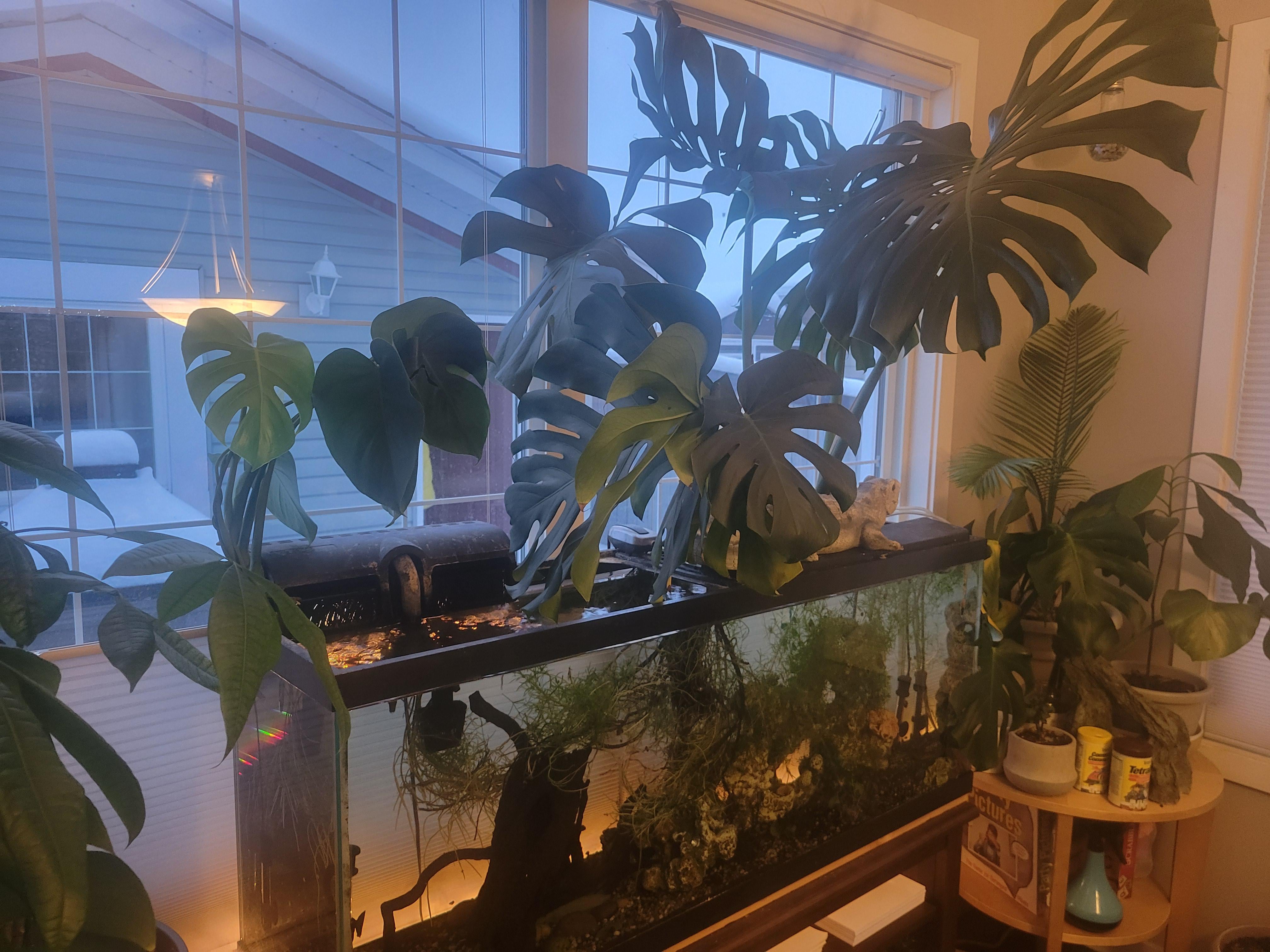 Damn is this a large form? Usually I think it’s ugly af when people put monsteras in their tanks but I really like this