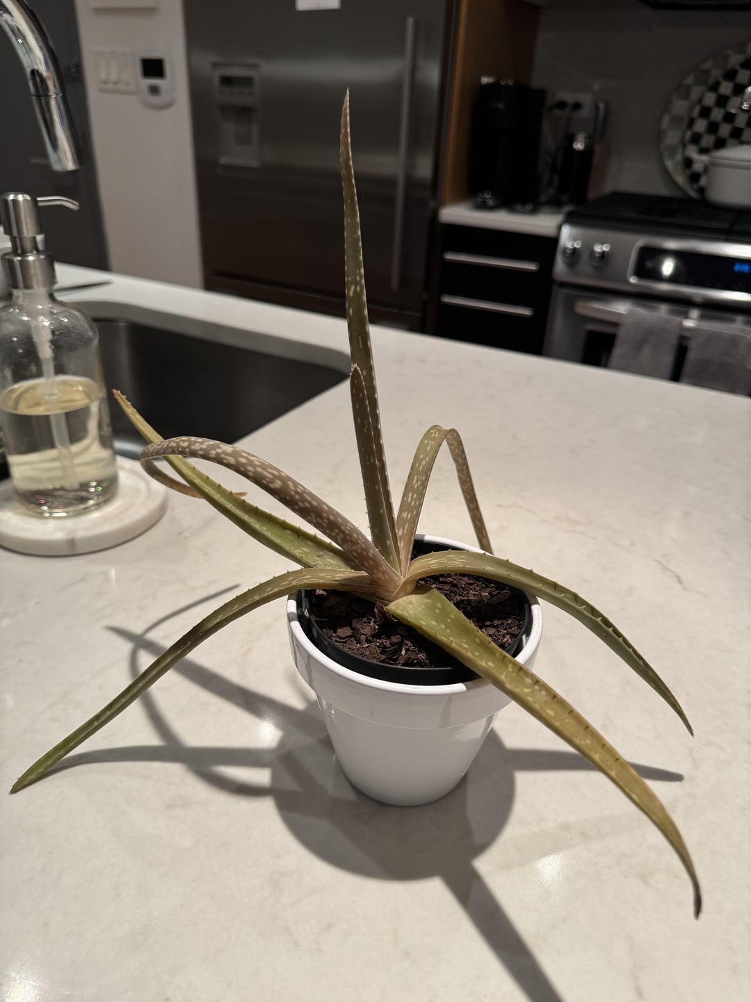 so this is not advice that iâve ever seen, but my aloe was struggling for a long time, and then i just put her in a cup of water. now sheâs happy