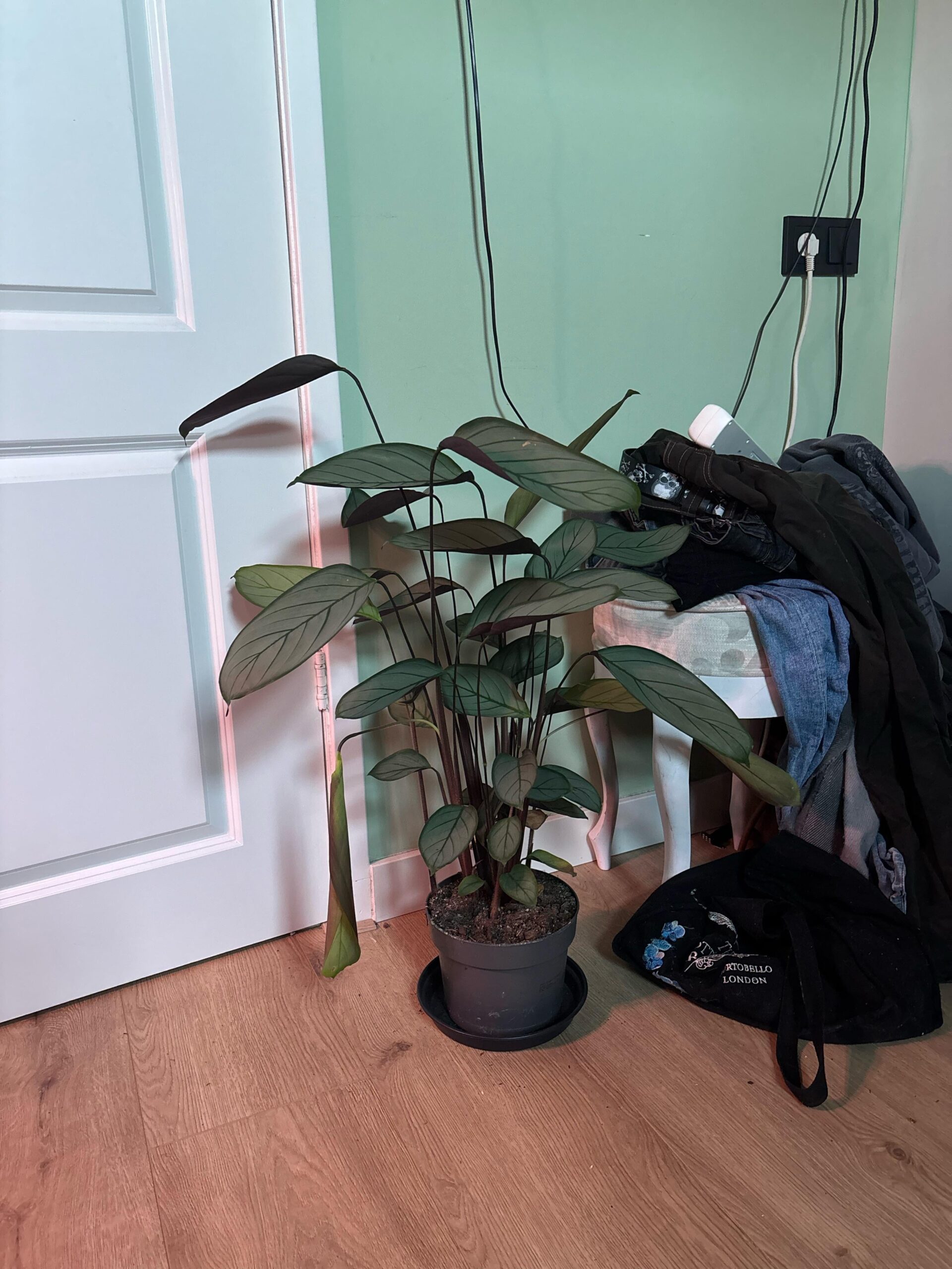 the new leaf started drooping. it looks like its too heavy or something idk. does anyone know whats up or how i can possibly prevent this? i water it like twice a month from the bottom untill the soil is completely wet. it doesnt get too much light its almost 3 meters away from the window.