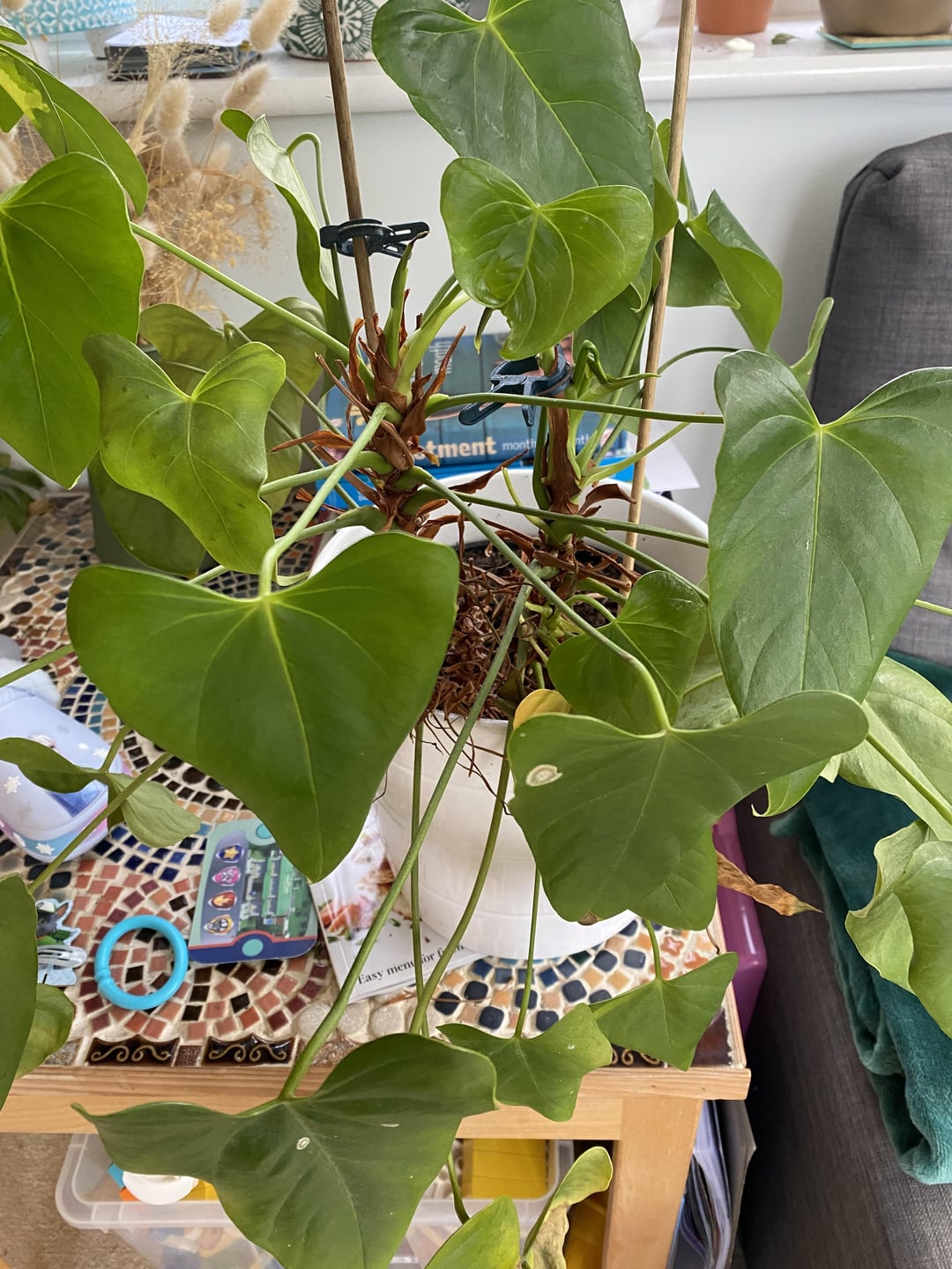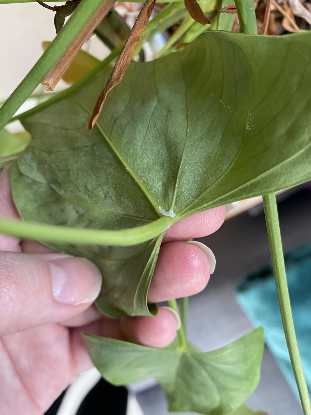 My houseplant (sorry cannot for the life of me remember the name) was doing really well. All of a sudden it’s started to flop. I use a moisture meter so it should be getting about the right of water and it gets mostly indirect light. It was happy in its spot for a long time so perhaps it’s winter low light levels? It also has this white residue on the leaf at the stem and some brown patches as shown but not sure if this is related or just normal. Any tips would be so appreciated 🙏