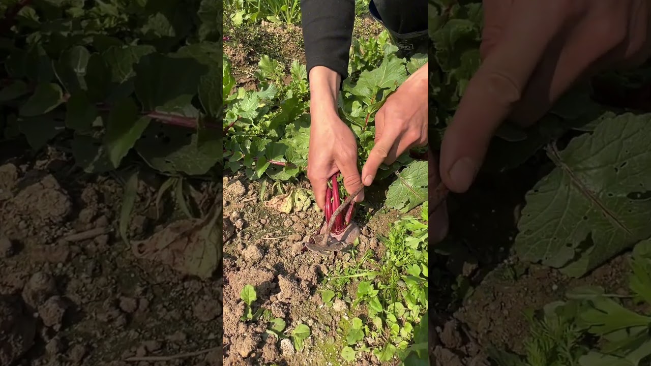 Pulling radishes. Fruit radishes are sweet and crisp when eaten raw