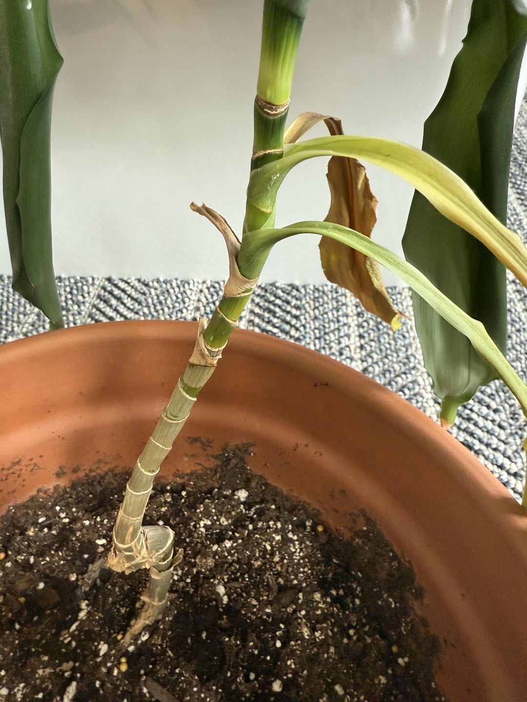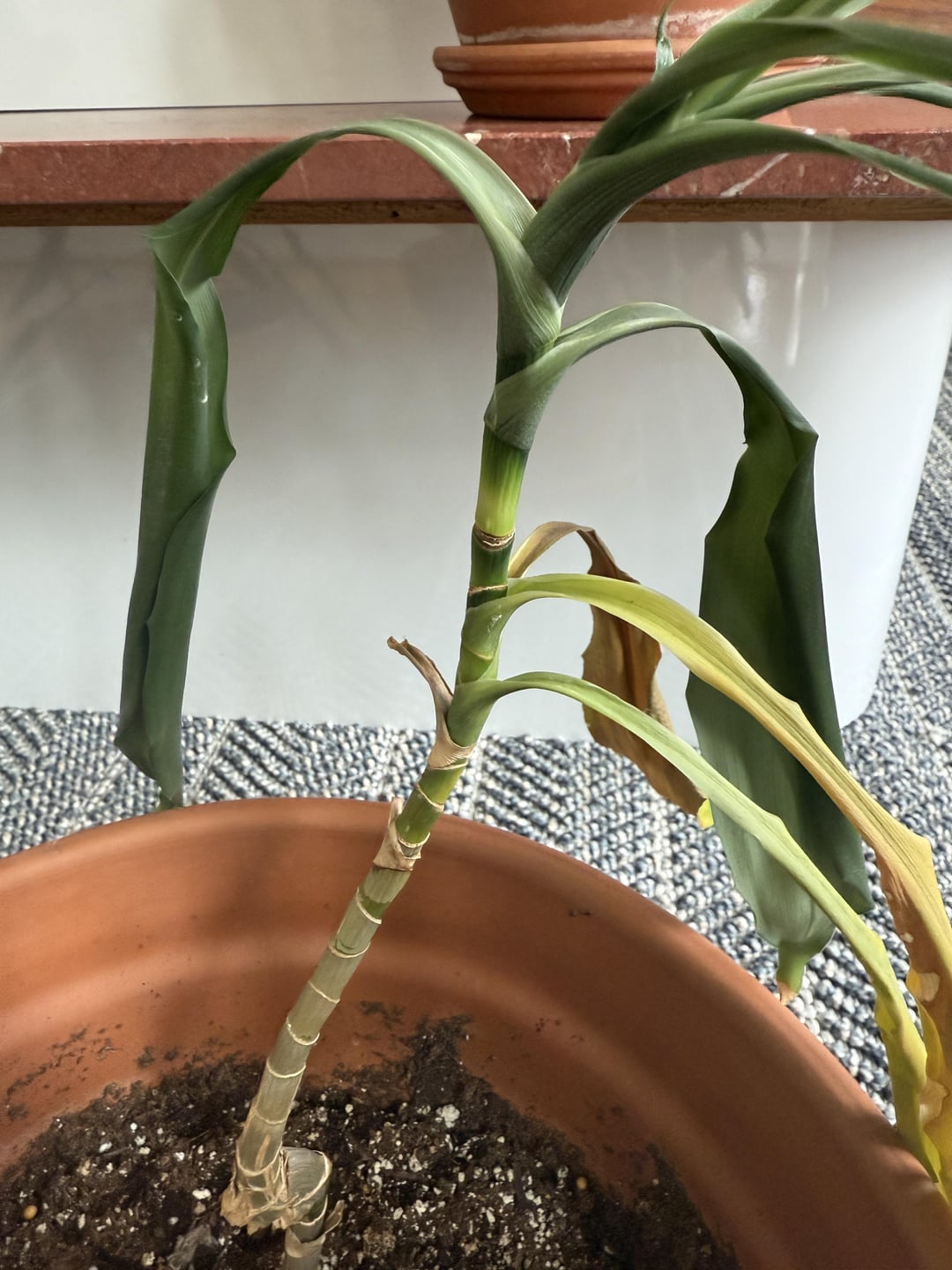 A Dracaena needs water like once every few weeks and the pot is way too big and they need a lot of light
