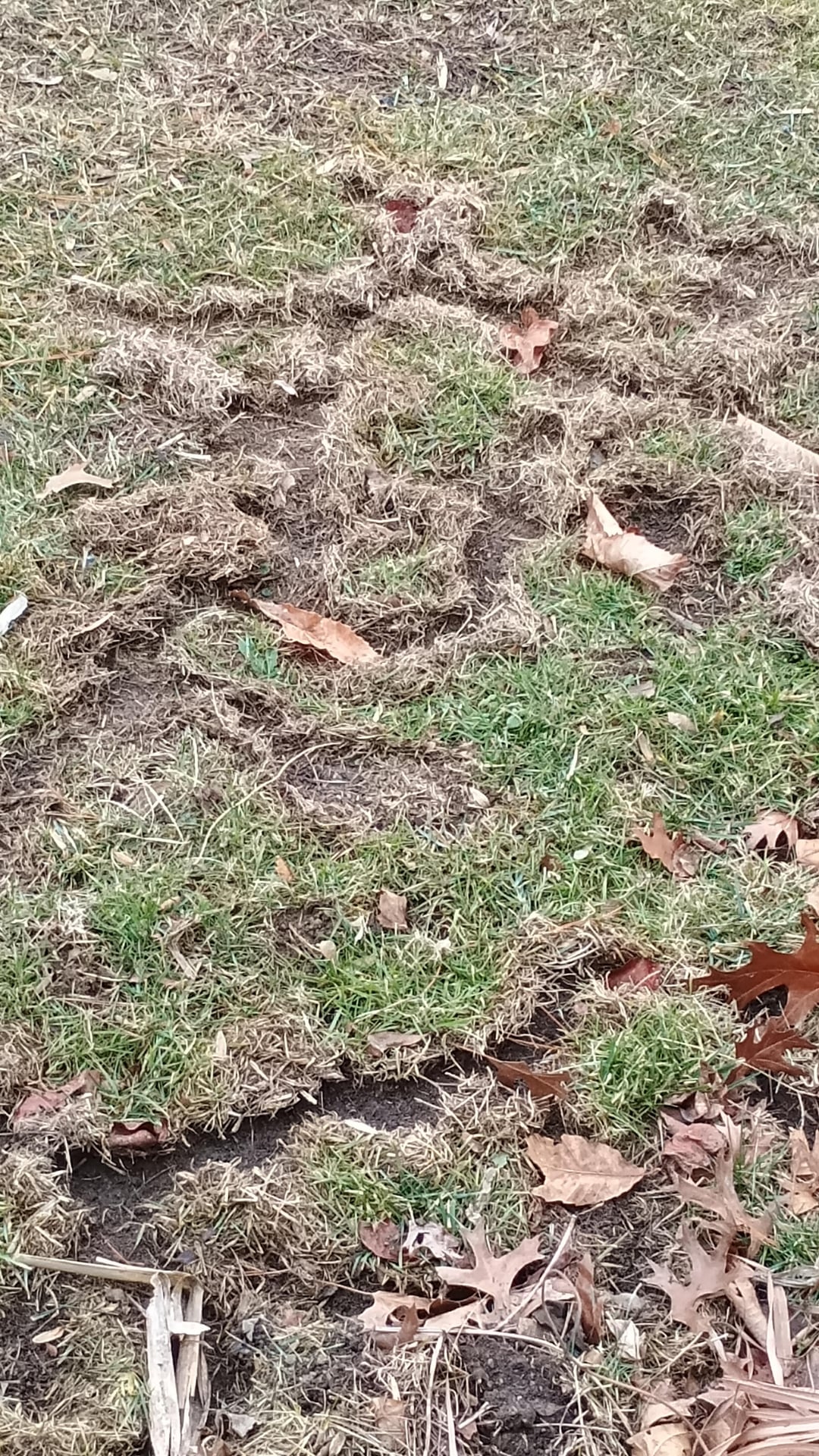 Voles. This will fill in when grass starts growing in a few months. I wouldn’t use poison as that will kill wildlife that eats them. They’re at the bottom of the food chain and are a vital food source for wildlife so o just leave them be.