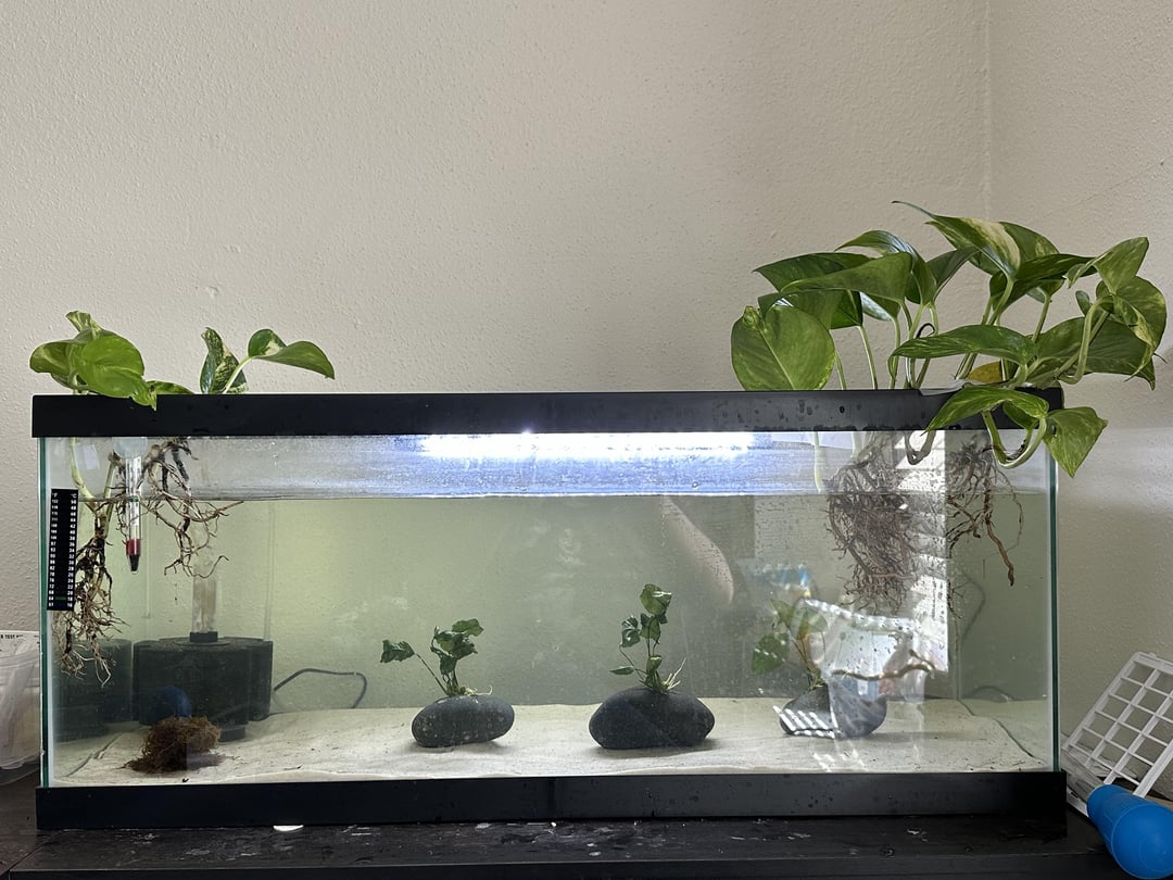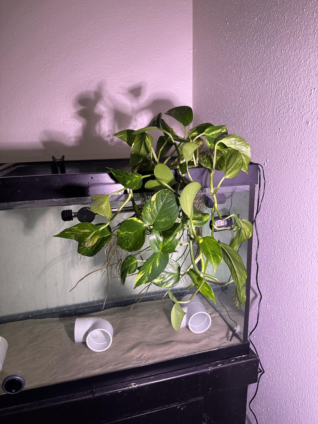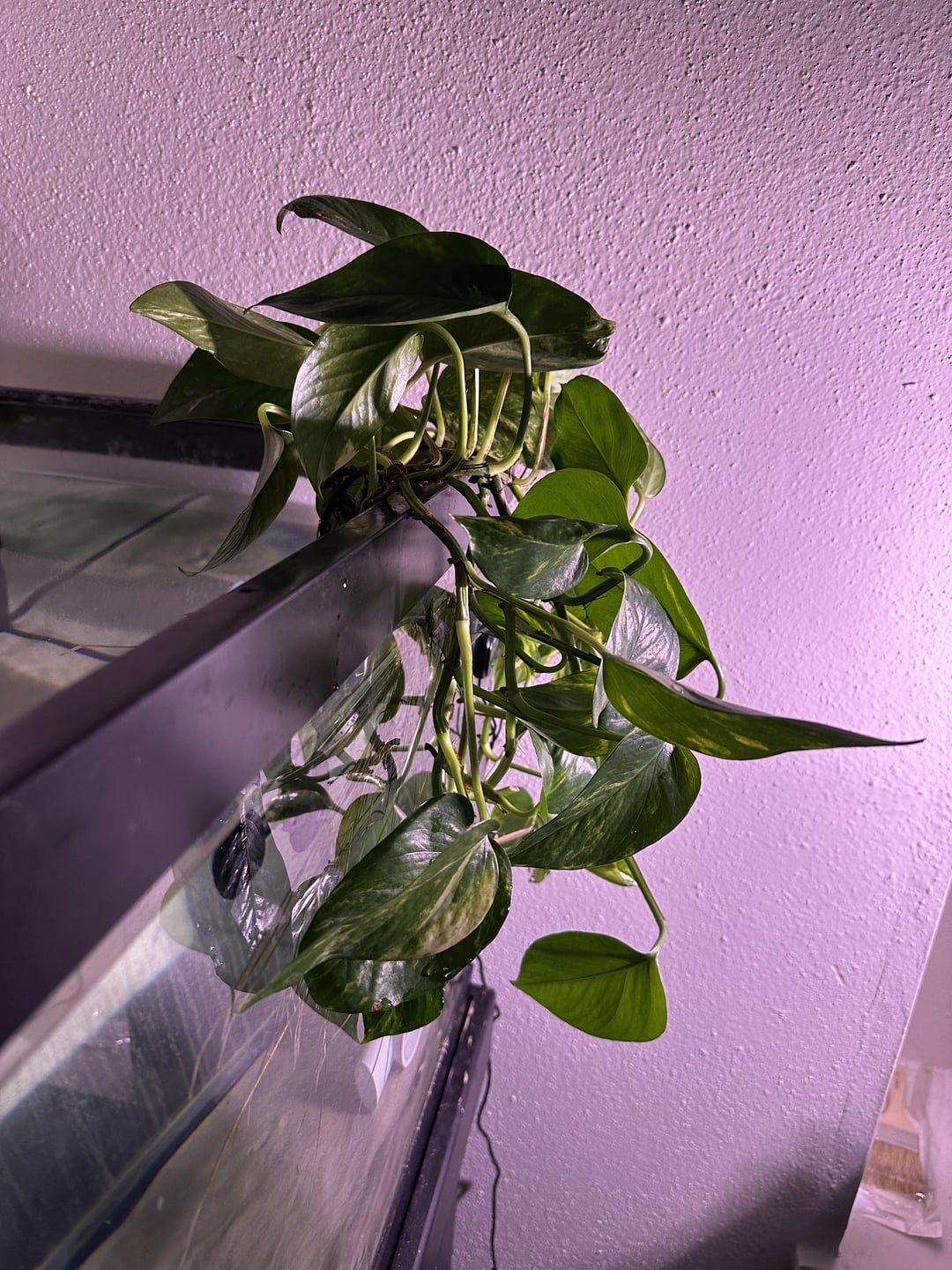So around August/September I purchased a potted pothos for tank filtration. I neglected it a bit as I dealt with pet health issues until recently. I’ve noticed the leaves have started to curl in wards. I believe it’s due to low light as one of the plants was curled around the tank light I had them supported on. I just purchased a plant light from Walmart to give it a try to see if it was due to light levels. Anything else I might be doing wrong or need to fix?