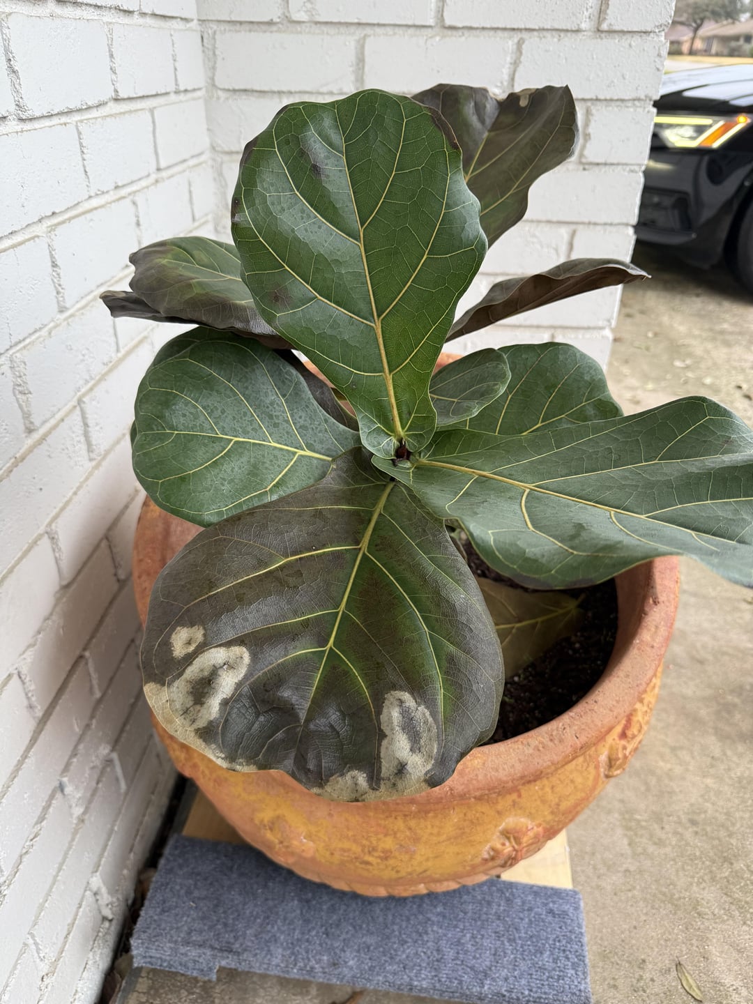 I did some googling and I wonder if this is cold damage, I had her in the garage during the winter and now have brought her back out.