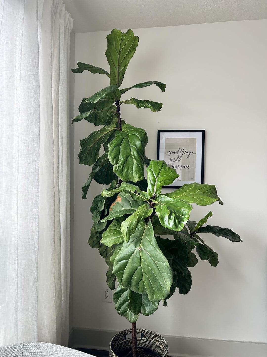 Are the bottom leaves drooping down? I water around once a week, depending on how dry the top of the soil is. Probs need to be repotted soon, but she still sprouts leaves every couple of months, so I don’t want to disturb her. Also thought she had white powdery mildew, but I’m not she that’s the case anymore because it has not progressed in weeks.