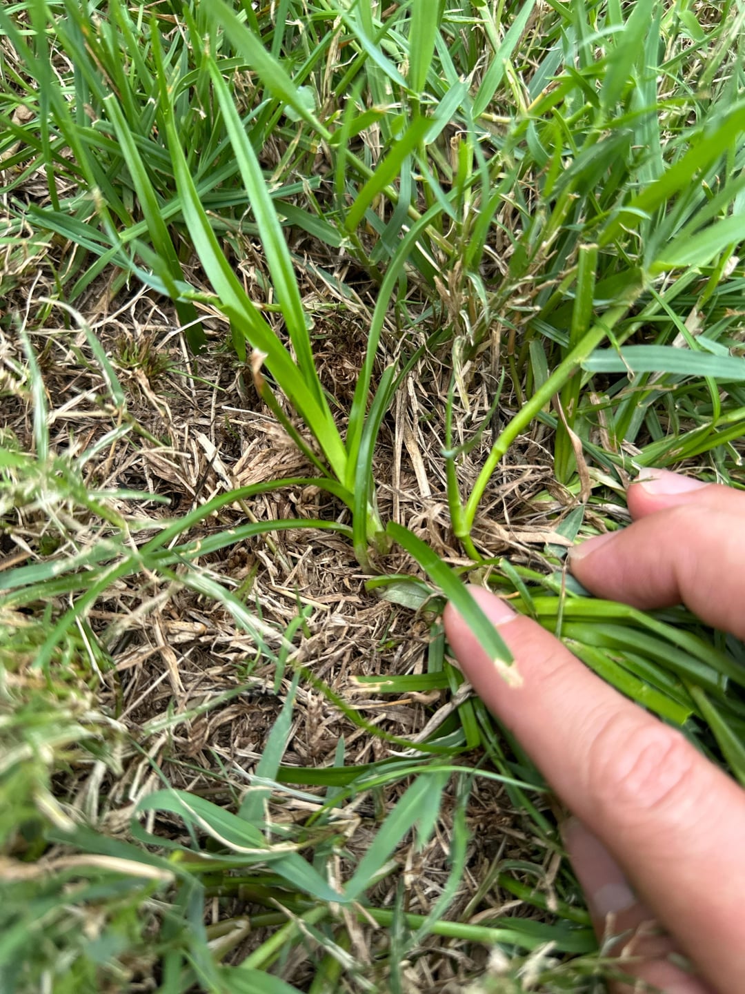 Nutsedge, if you dig a little deeper, you’ll find little tubers (bulbs) attached to the roots. When you pull it, the stem detatches from the roots so you don’t see that part.