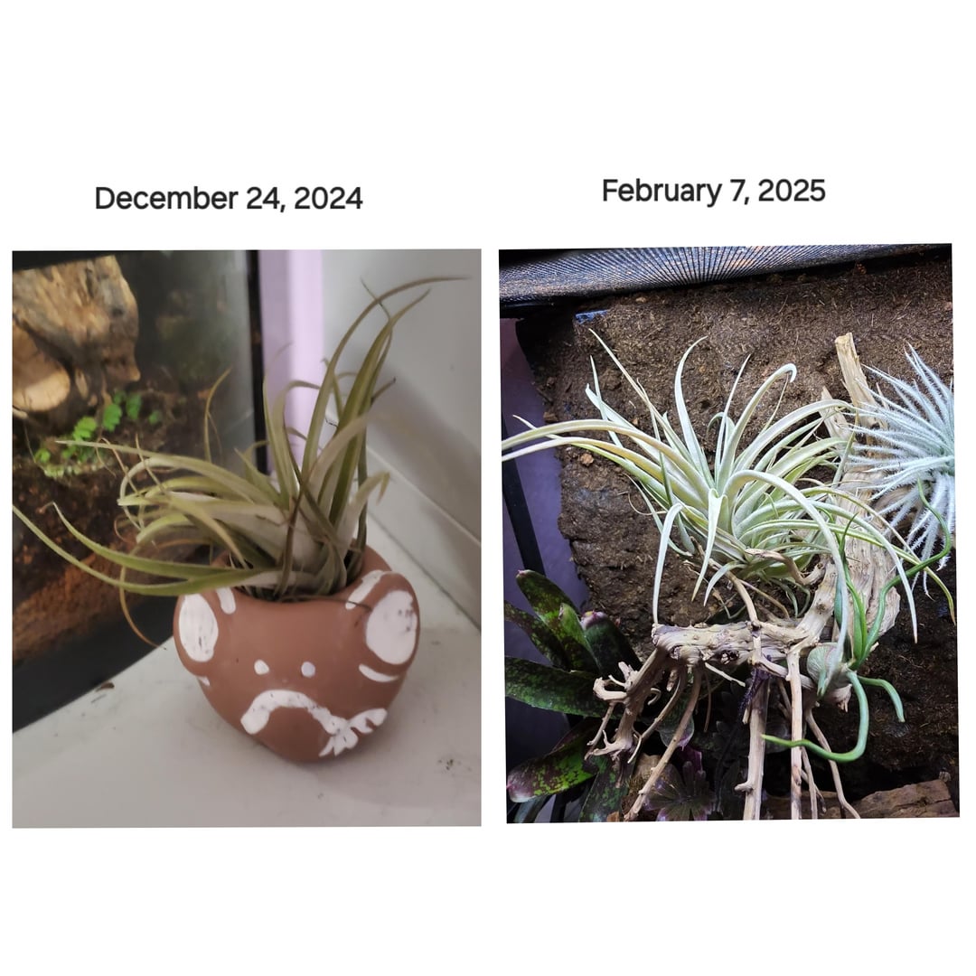 My mom gave me this airplant that was gifted to her on Chrismas Eve. I put it in my terrarium, with my other air plants. I knew it had a bit of a glow up, but seeing the photos side by side is a lot of fun!