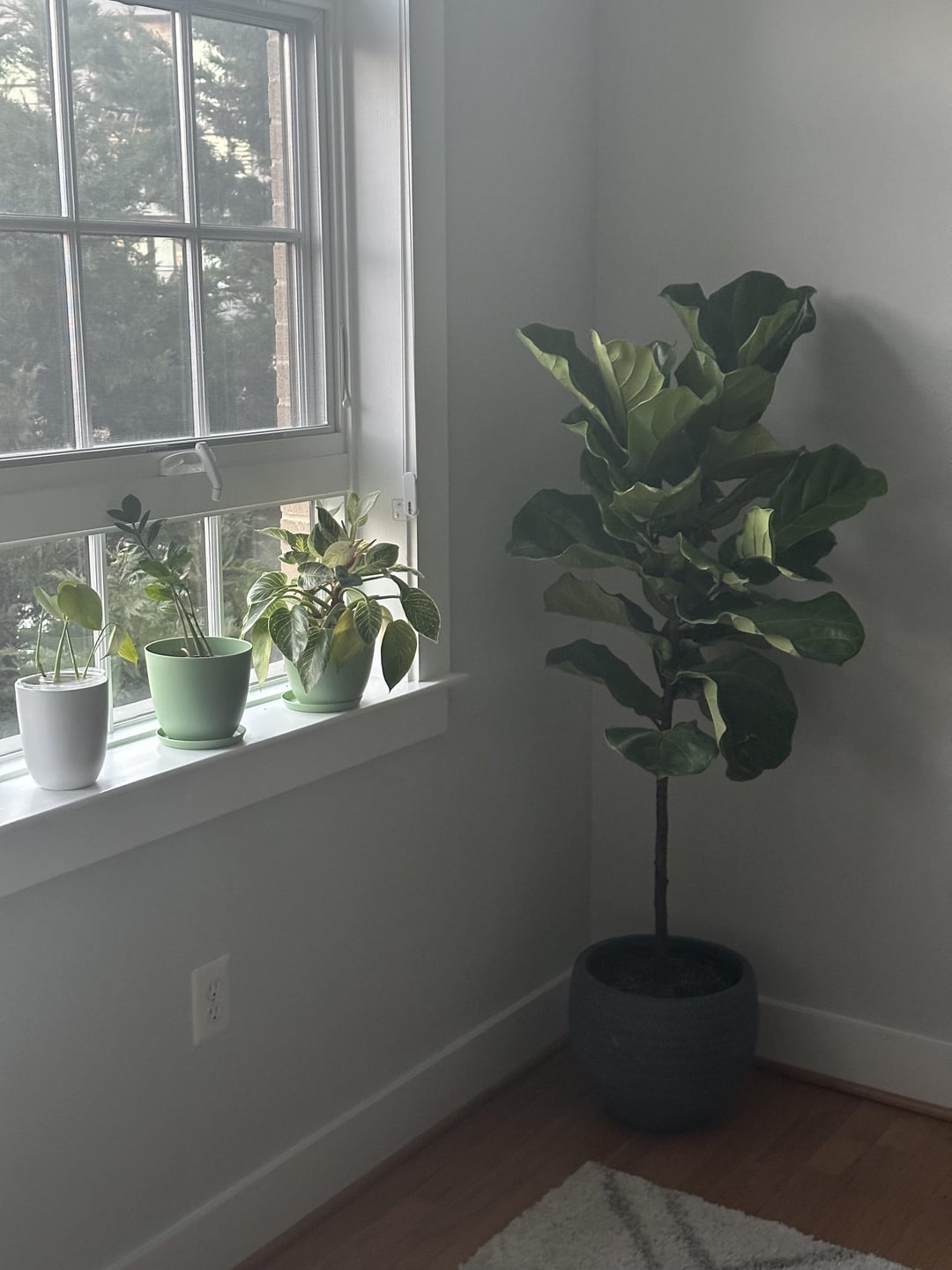 New fiddle leaf owner. It’s placed in the corner of my living room, we have a large west facing window in Washington DC. I’ve added a few photos at different time points in the day. The biggest advice I’ve gotten is that the plant needs a lot of sunlight. So naturally I’m concerned that this placement, although works well with the room, might not be giving the plant as much sunlight as it needs.