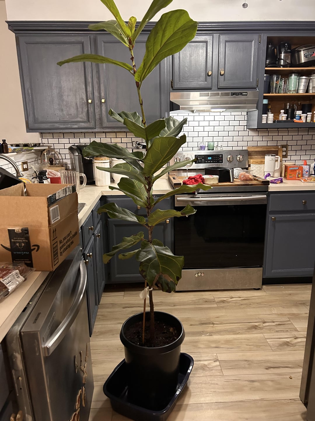 My fly has grown almost 24” since thanks giving but she’s starting to tilt over and figured it’s a good time to hopefully produce more bottom leaves and branching out. Where my hand is, is this a good spot to cut or go right under the tiny new leaf at the top?