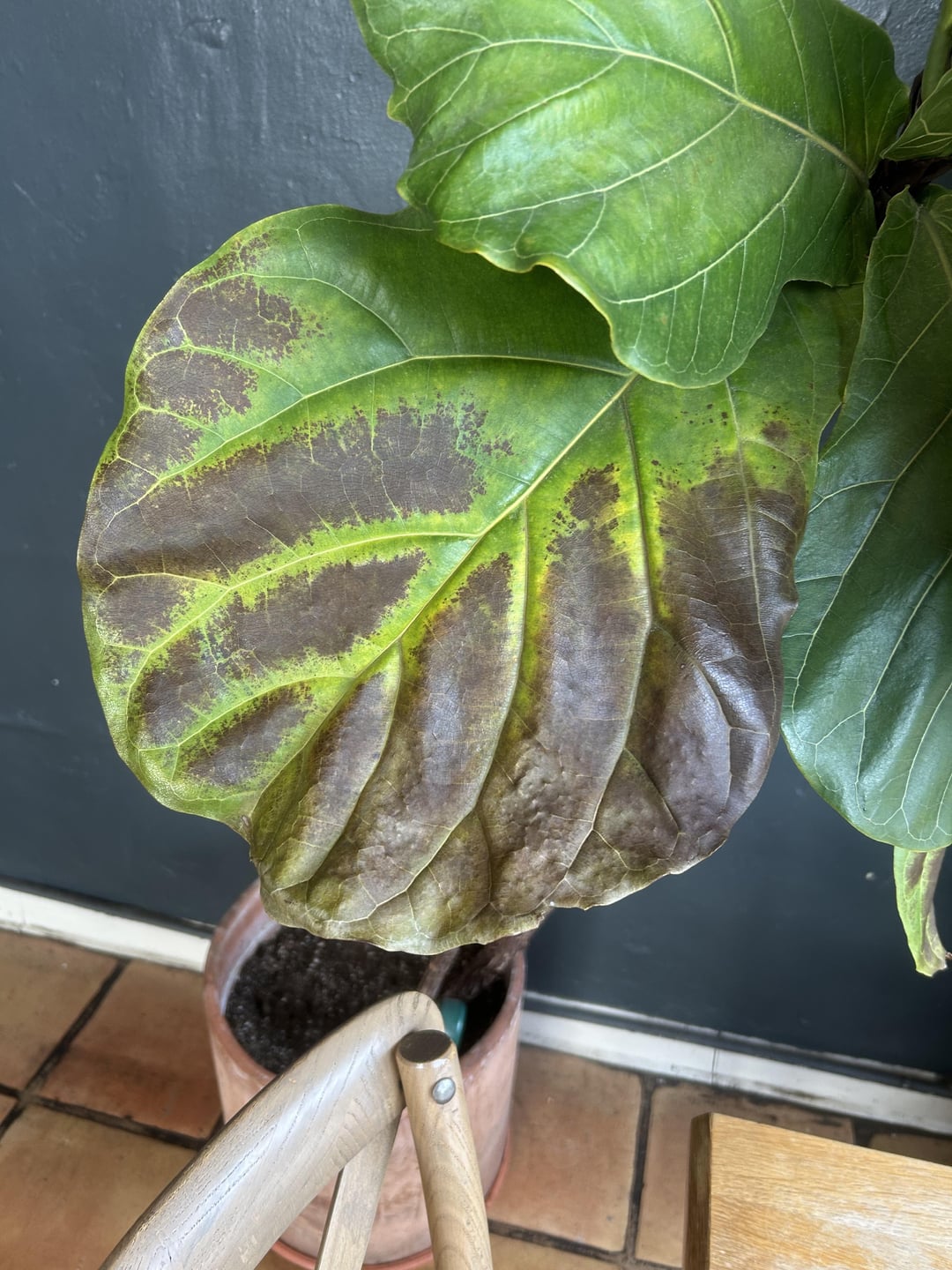 This FLF has been chilling in this spot for like a year. Looks like sunburn but I have a hard time believing that. Had one week of inconsistent watering, so it may be underwatered. Thoughts and advice? by vegancheeseboard ficus lyratafiddle leaf fig Write A CommentYou must be logged in to post a comment.