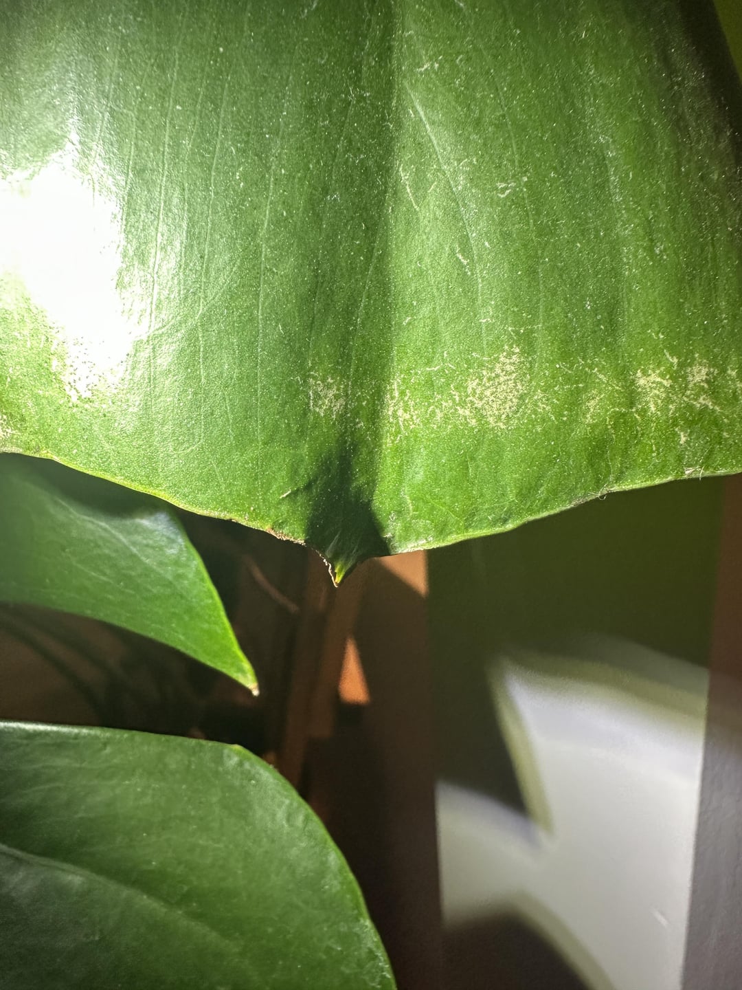 I was doing a nightly watering and had my headlamp on like a weirdo, and noticed a bunch of these groupings of white things. I’m so so so sad if this is scale, or spider mites, or mealy bugs. I just don’t know what to do. I’ve had this guy from day one on my plant journey, and he’s situated front and center of our home 🙁 Can anyone help? If he is infested, is he save-able? Are other plants in my house okay or do I need to do a thorough inspection now? :/ Feeling overwhelmed and defeated.