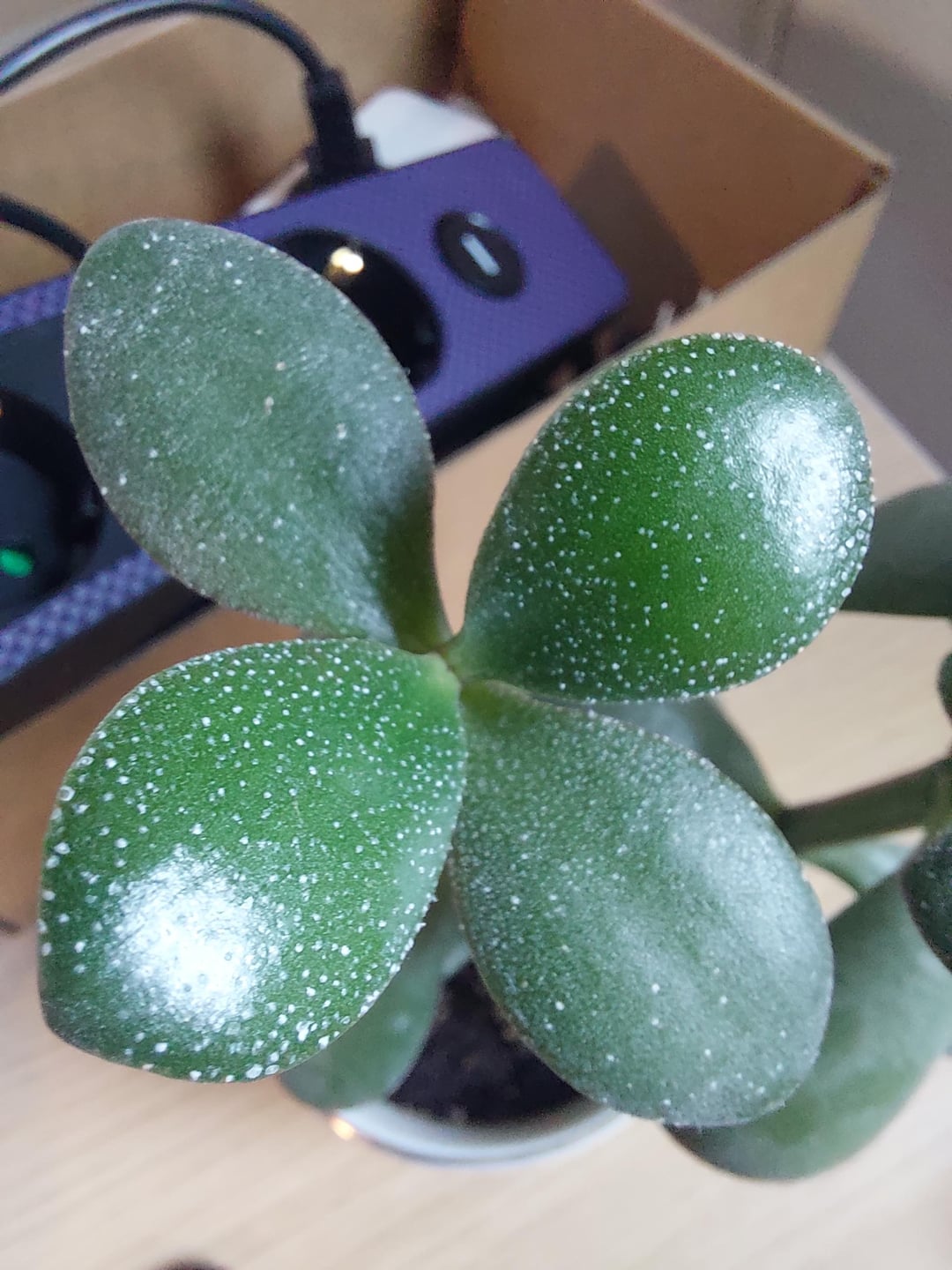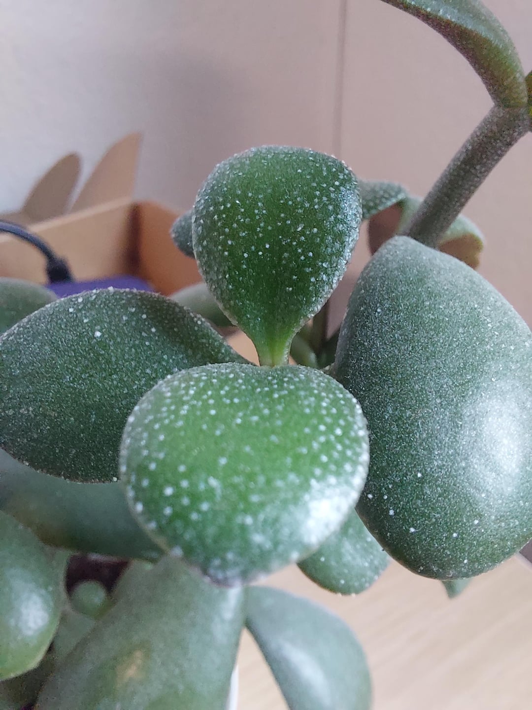 This appears to be a Lizard Skin succulent and I think they are supposed to have the white spots. These look normal. Not like an infestation of any kind. Maybe someone sees something I don’t but I think this is a healthy little plant đ”