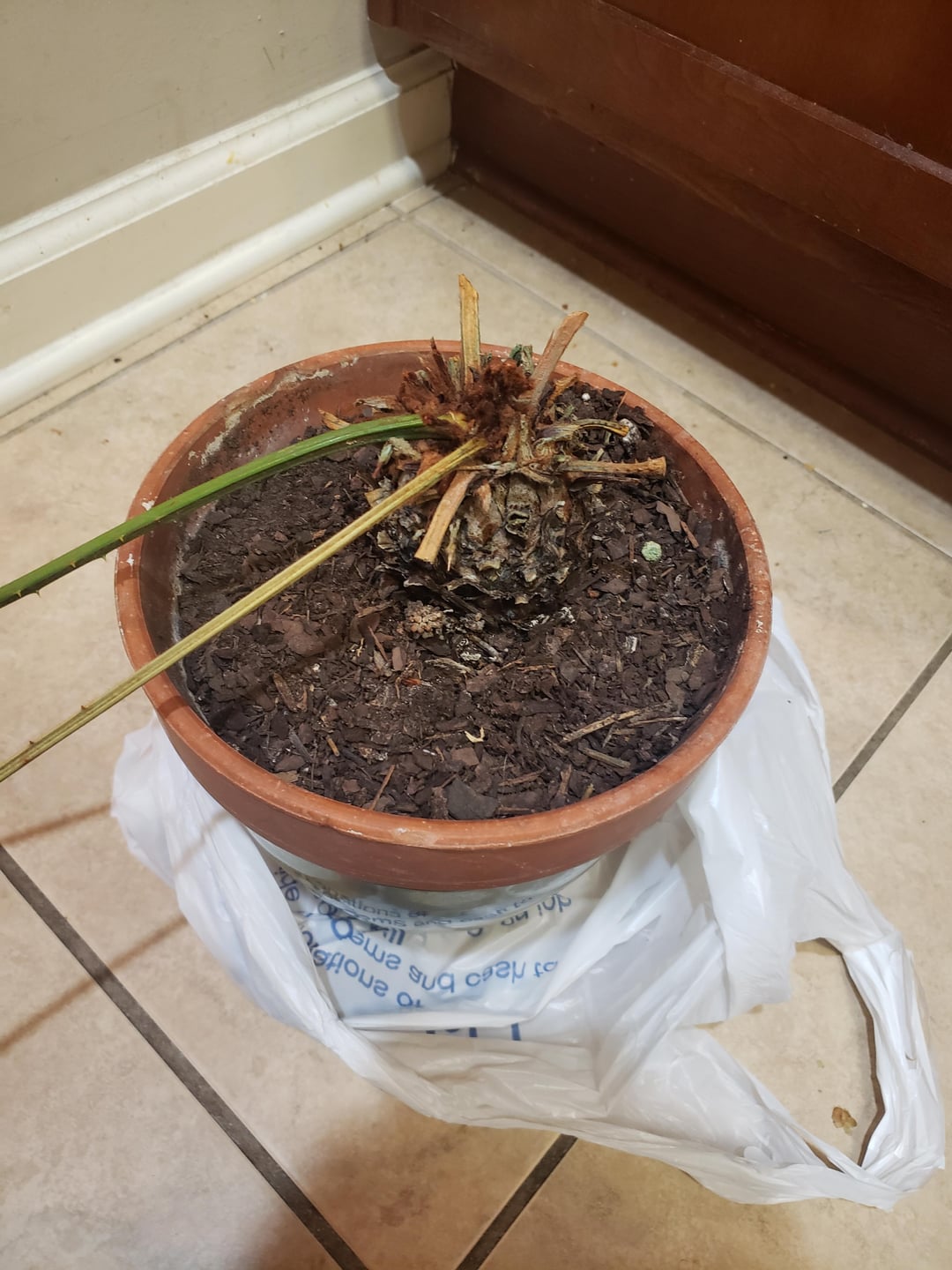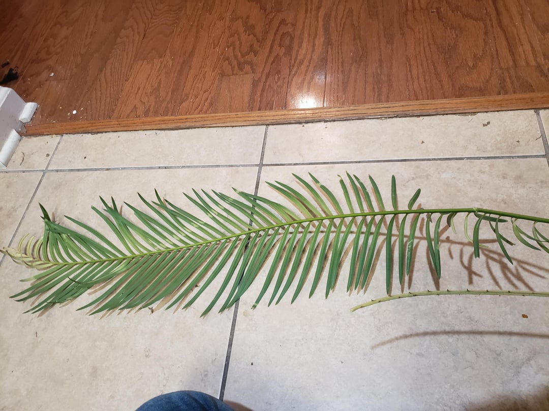 It’s a cycad! One if the world’s oldest plants! I have one. I think yours needs water. And a sunny window. Mine got scale one winter and i put it in the basement for a while and all the leaves died but i put out in spring and watered it and it grew new leaves so some give up hope. I let it get pretty dry before i water again.