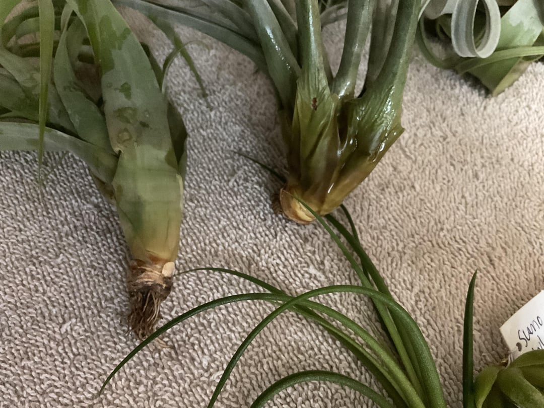 Are these your plants that you have had for a while, or did you just receive them? The middle one on the first picture looks like is rotting or got frost damage. None of them look right. Mushy is not good. It usually means they are rotting.