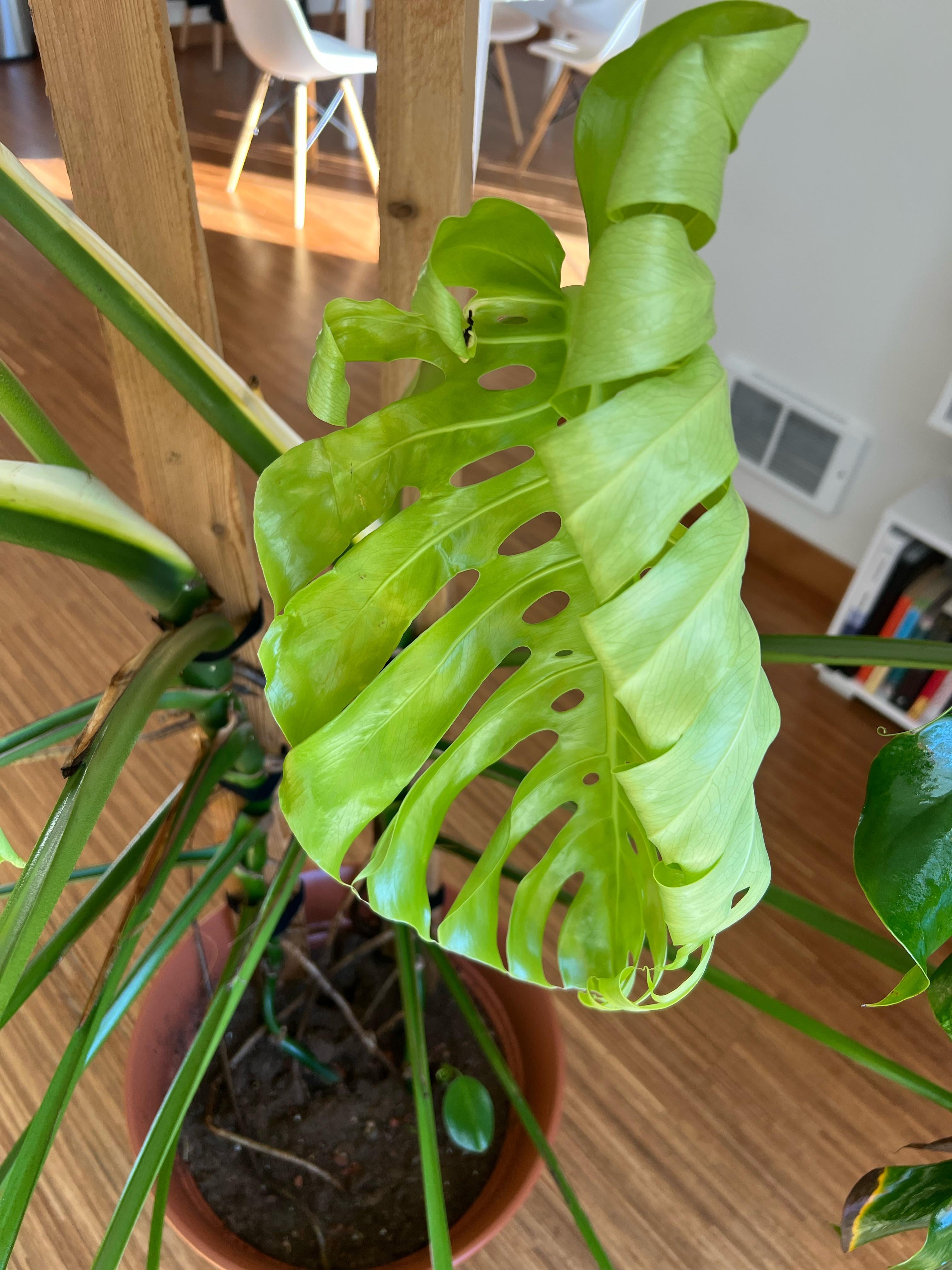 It’s fine. It’s just a bit of mechanical damage while unfurling. Get used to it. If you look at them wrong while unfurling, they can get minor mechanical damage. Most commonly, it’s caused by us being impatient and trying to take a peek when we shouldn’t. Other times, it’s low humidity, causing the leaf to get trapped a bit.