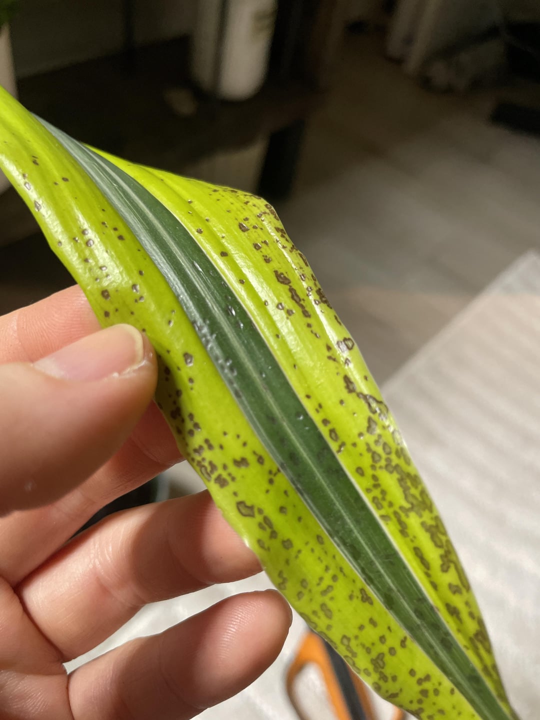 So I took it upon myself to help save it. What causes this? Online states fungal/bacteria. Which freaked me out as I don’t want a nice act to save a plant, but hurting my collection. So I chipped up all the leaves from it, and it’s been shunned to the corner of the room, with its own grow lamp. 😅