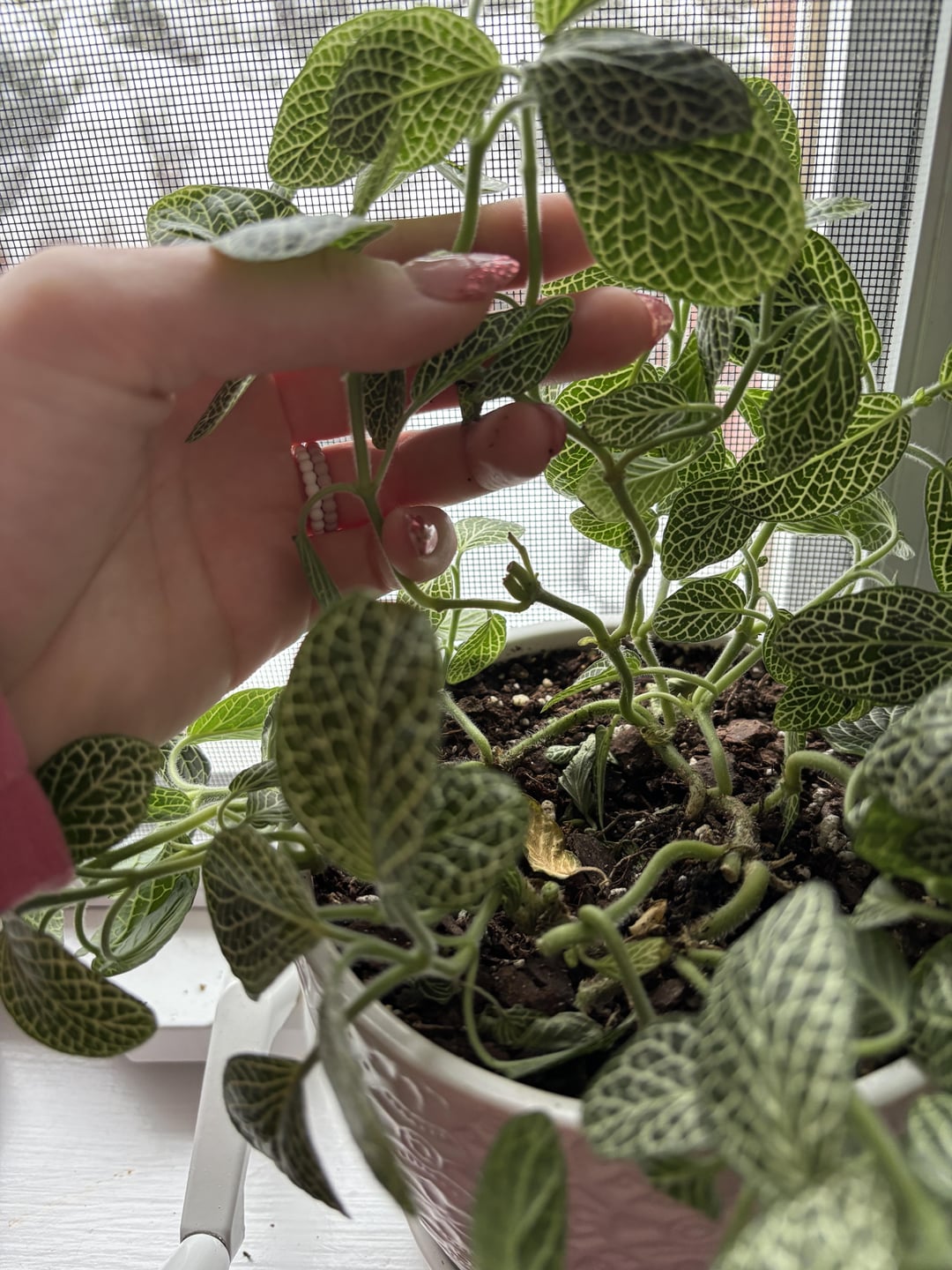 My nerve plant has always been SUPER happy. Maybe now a little too happy. It’s always been nice and full (last pic) and I’ve propagated it plenty of times. I noticed it getting a bit leggy, and tried to trim some of the longer stems. Come to realize, all the stems are long and leggy, and now it’s awkward AF. Do I just trim the rest down??? How do I make it more contained again?