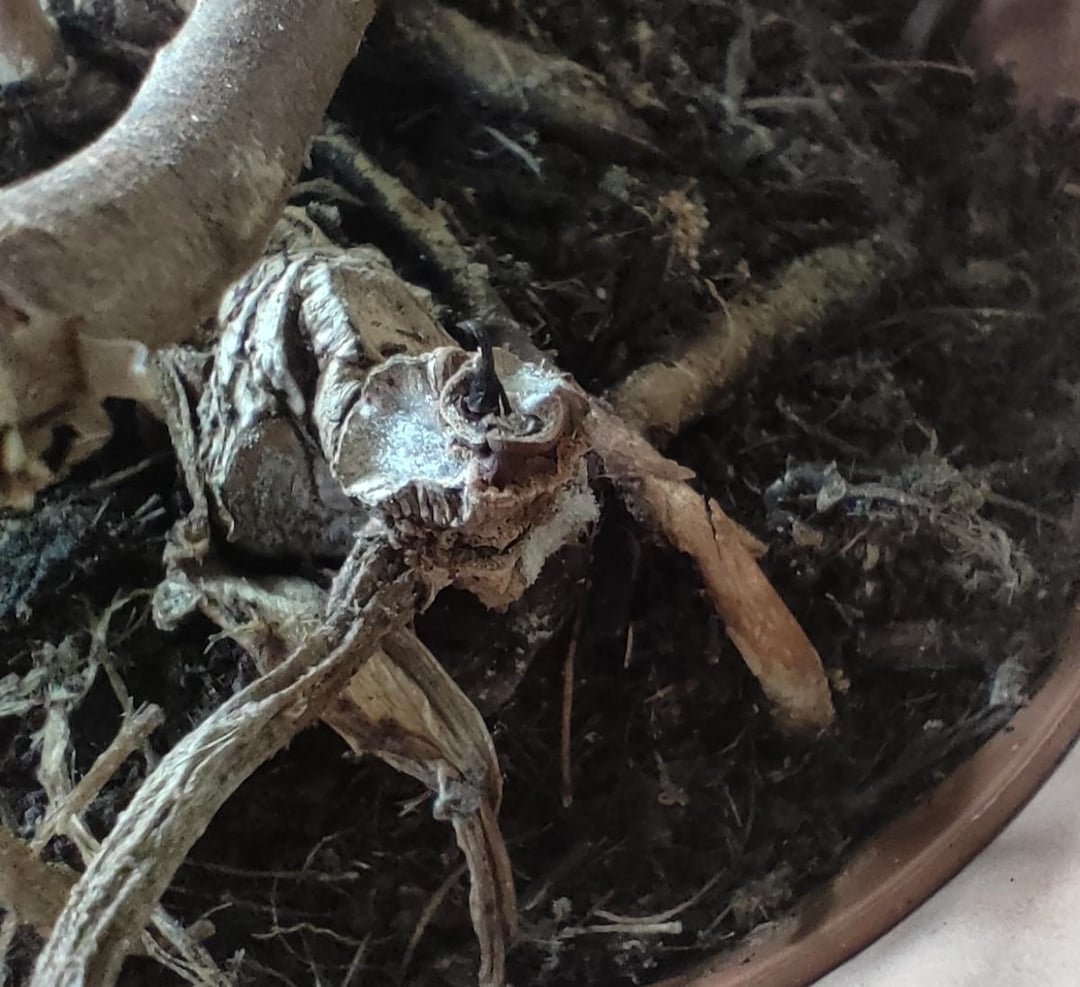 I got this Philodendron Billietiae yesterday, the pot has one healthy plant and a dead(?) stump with mold on it (although it's still firmly rooted).