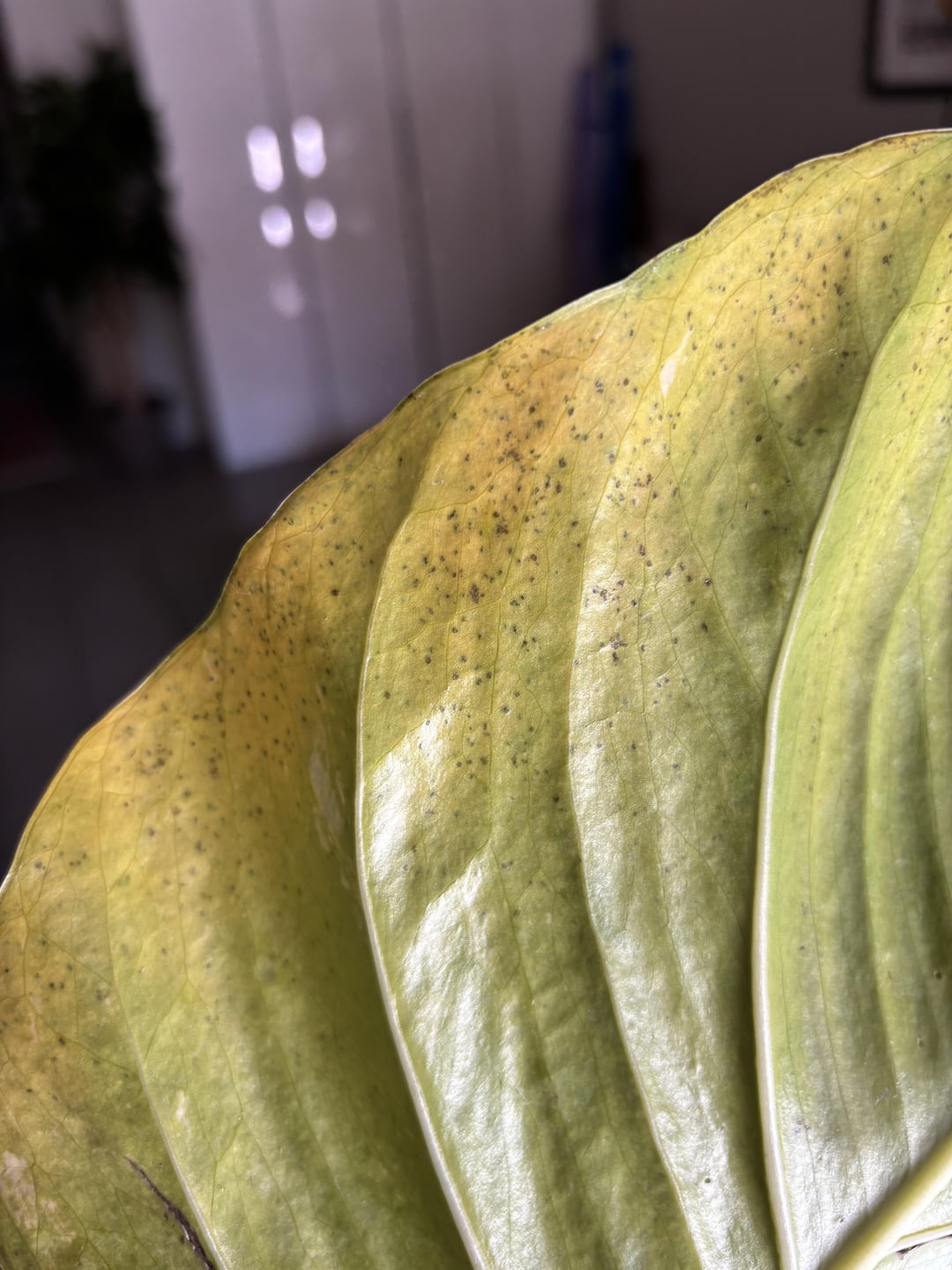My mom gifted me this pothos for Xmas, I’ve watered it maybe 3 times since getting it and it has its own grow light. Ever since then, several huge leaves have turned yellow and developed these spots. I pick them off immediately but it just keeps happening 🙁 pleaseeeee don’t say thrips 😭