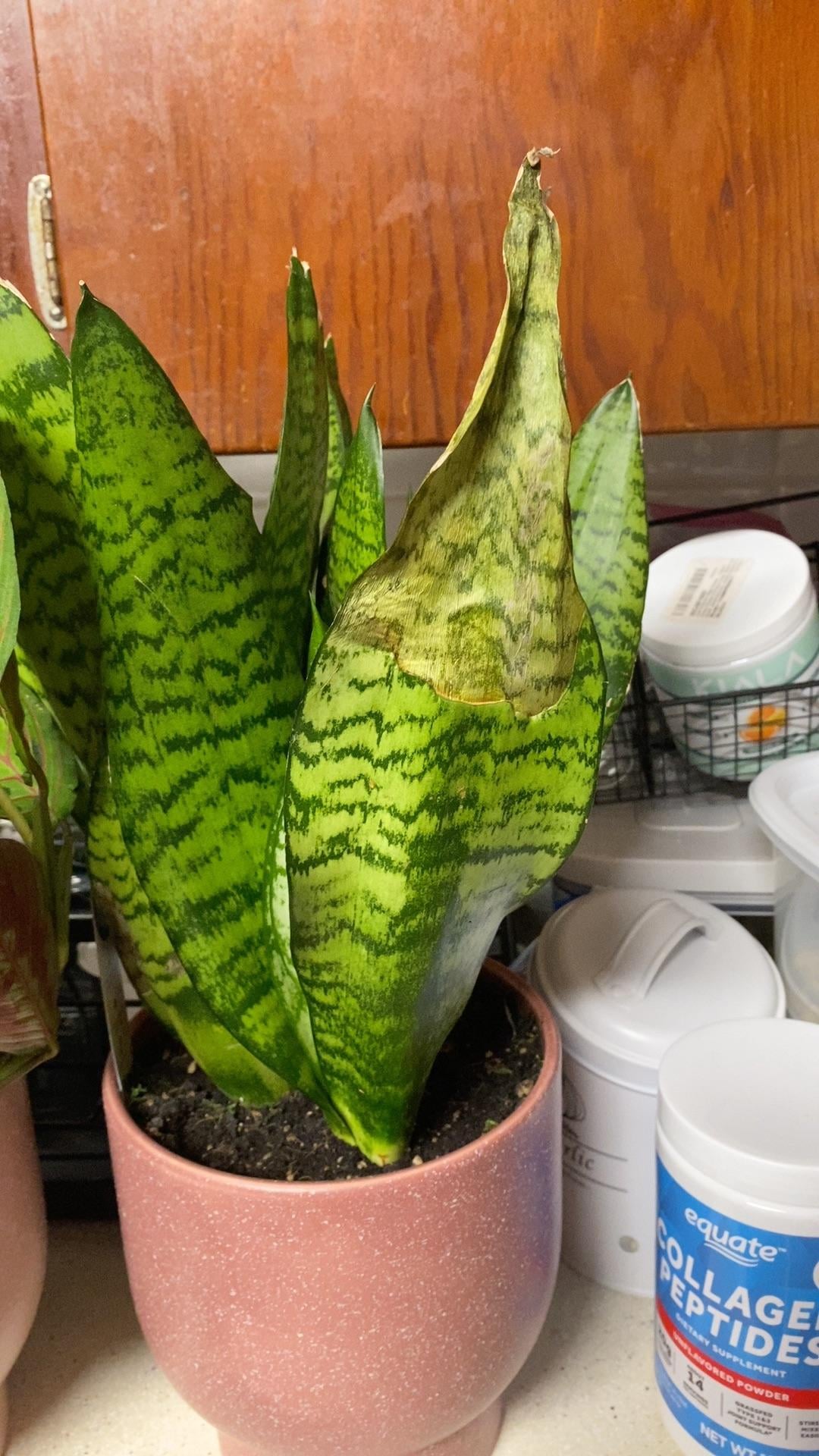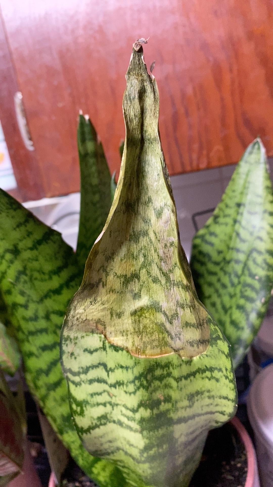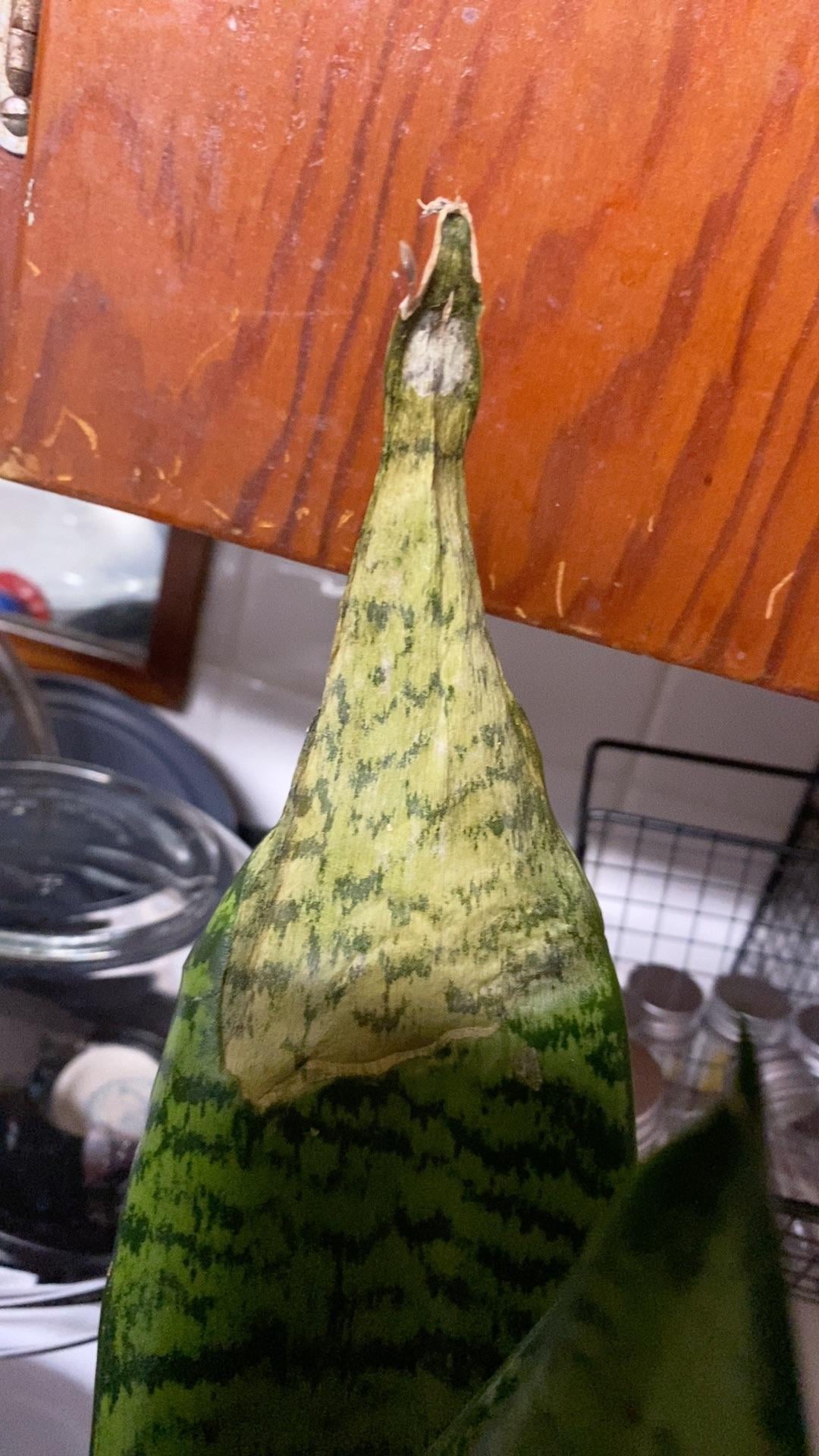 Just picked up “Snake Eyes” (snake plant) from Walmart five days ago and he’s developed this. Just a heads up, I am totally a beginner with inside plants so I might have watered too much 🤷🏽♀️. He’s right by the window like four feet away, though it’s very temporary.