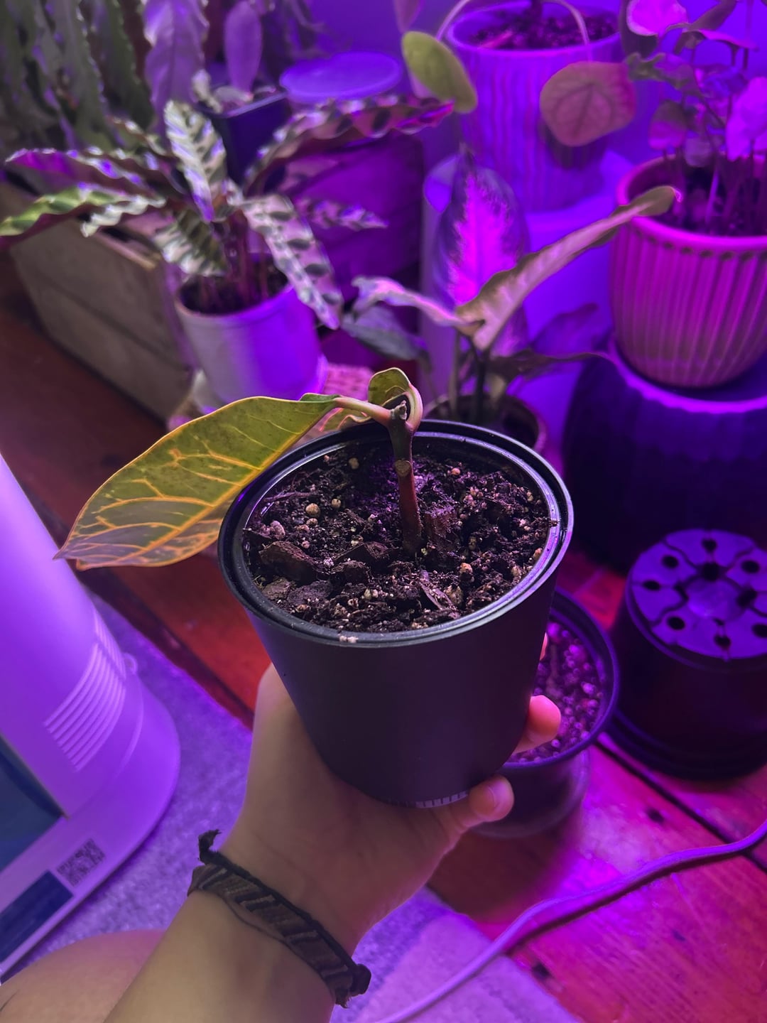 I brought this plant home maybe a week ago(grocery store).. I did pest treatments before letting her hang with the other babies… it’s been shedding all its leaves.. I watered it once since getting it and the soil is still moist. It’s under a grow light for 12 hours ..