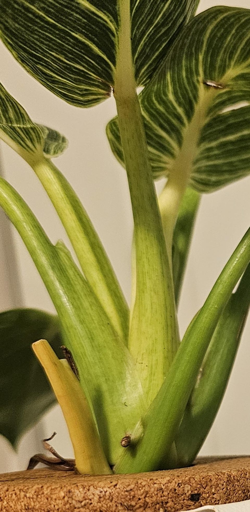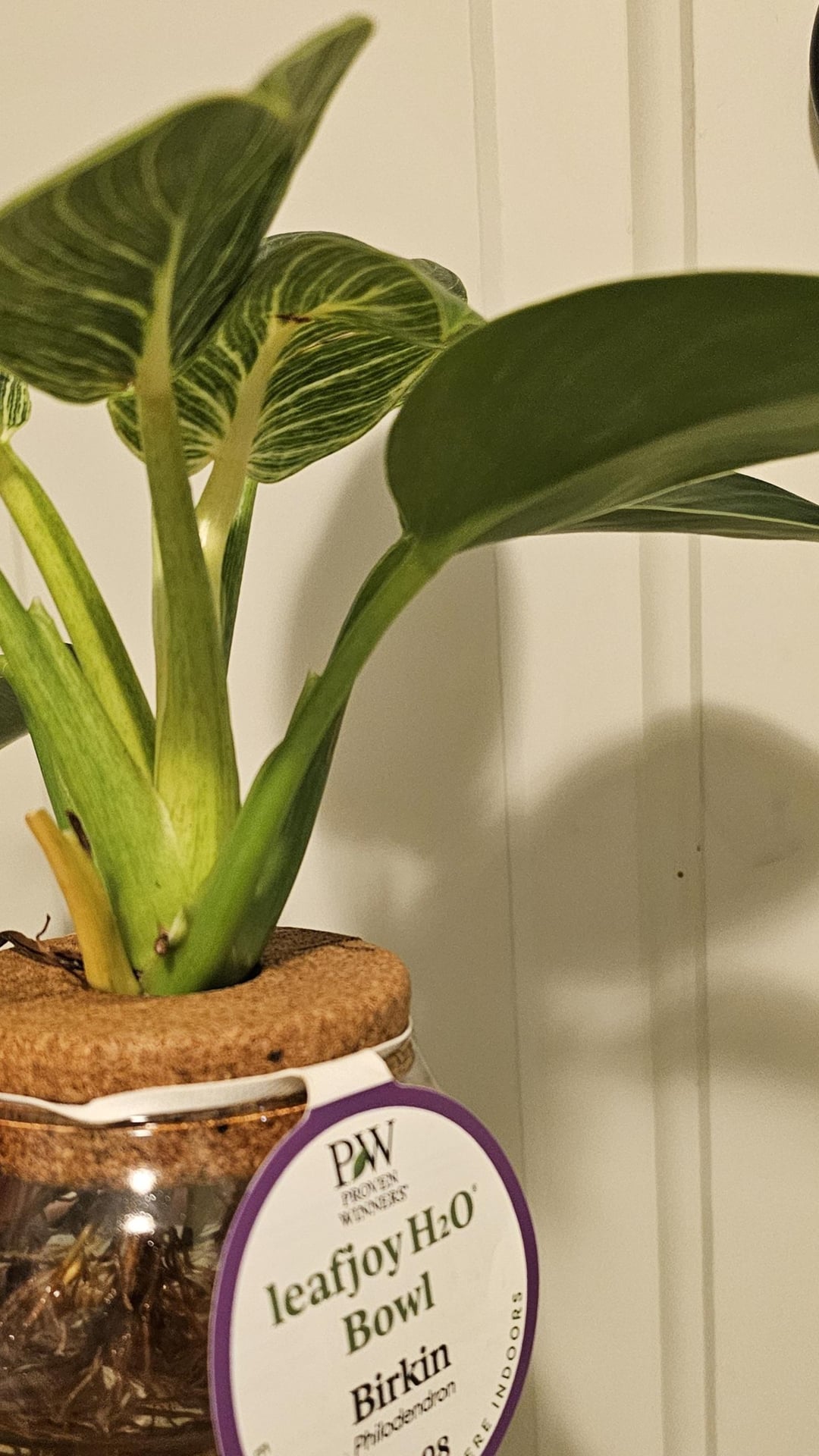 so birkins are quite an unstable genus and can revert to their mother species if not given enough light (or if they just feel like it) so lots of lights. the roots coming out the sides are aerial roots, philos are climbing plants so a moss pole or support would be a good idea.