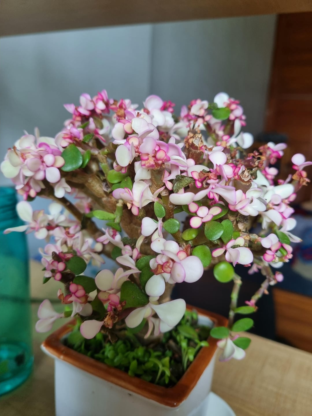 It’s a really pretty plant and pot! My old roommate gifted me a jade plant that i ceremoniously watered to death. This reminds me of it.