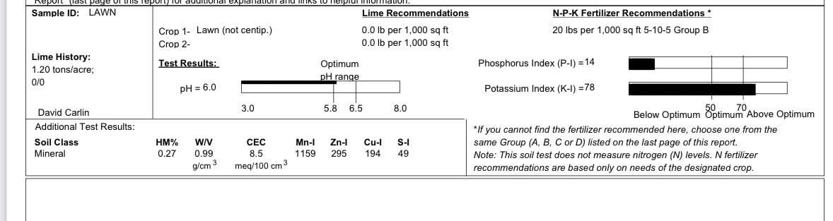 If you’re looking for info on how to interpret soil test results, you can find all you need to know [in this post here.](https://www.reddit.com/r/lawncare/s/LPtlW1pau5)