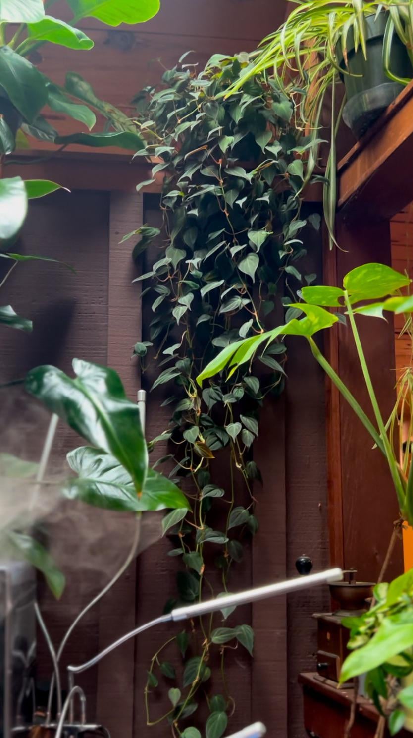 Ft. My Red Stem Emerald Philo peeking in from the right and my Thai Constellation Monstera on the Left.