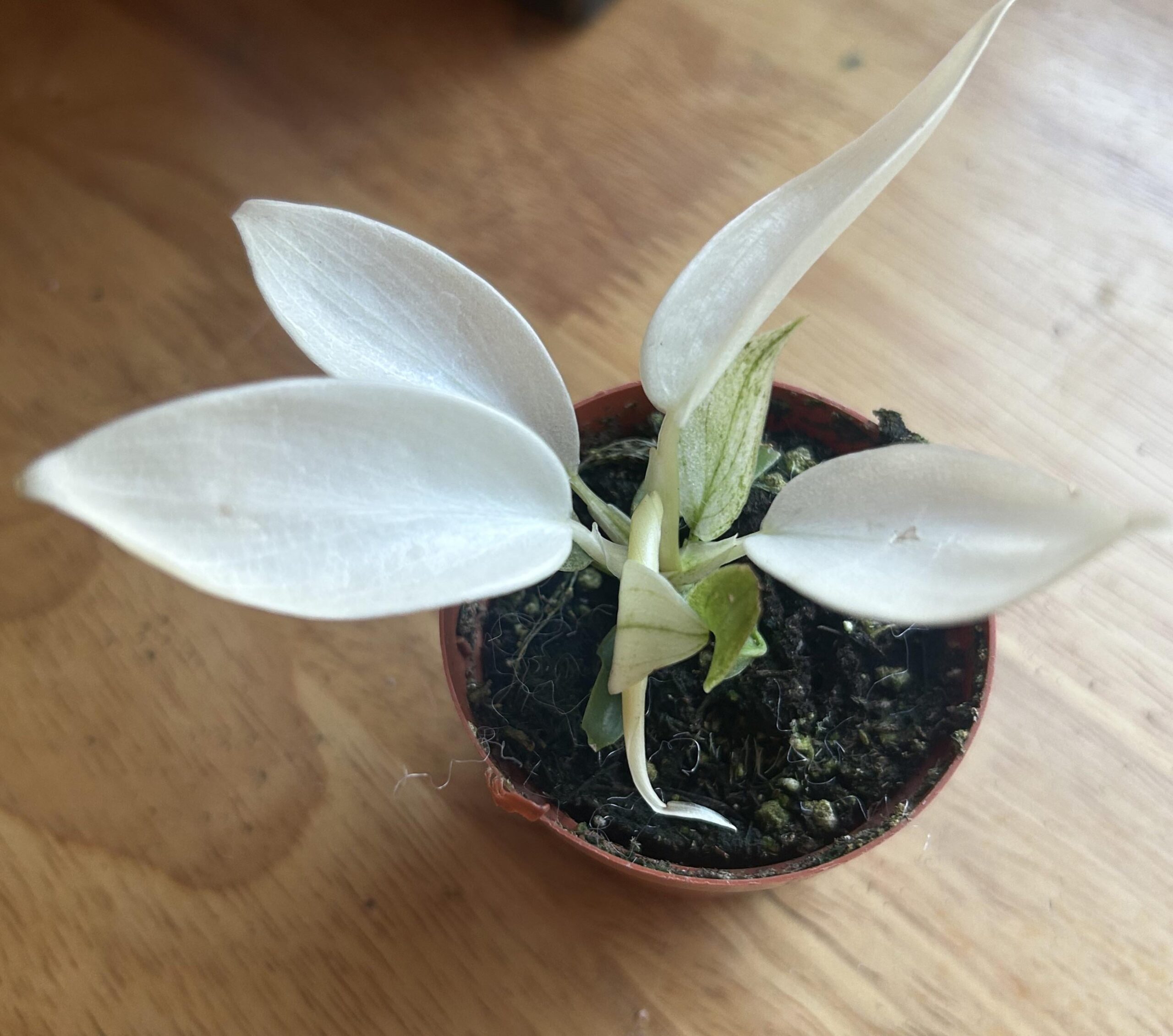 Mine was smaller than yours and not as ghostly. I’ve had it since last October. I didn’t do anything special tbh, chunky mix, grow light (it’s winter here) and quite warm as it’s on the shelf above a radiator. And it’s doing really well.
