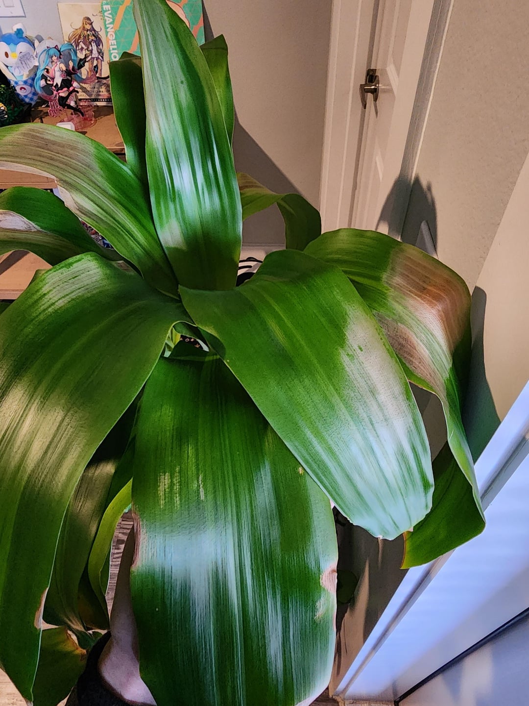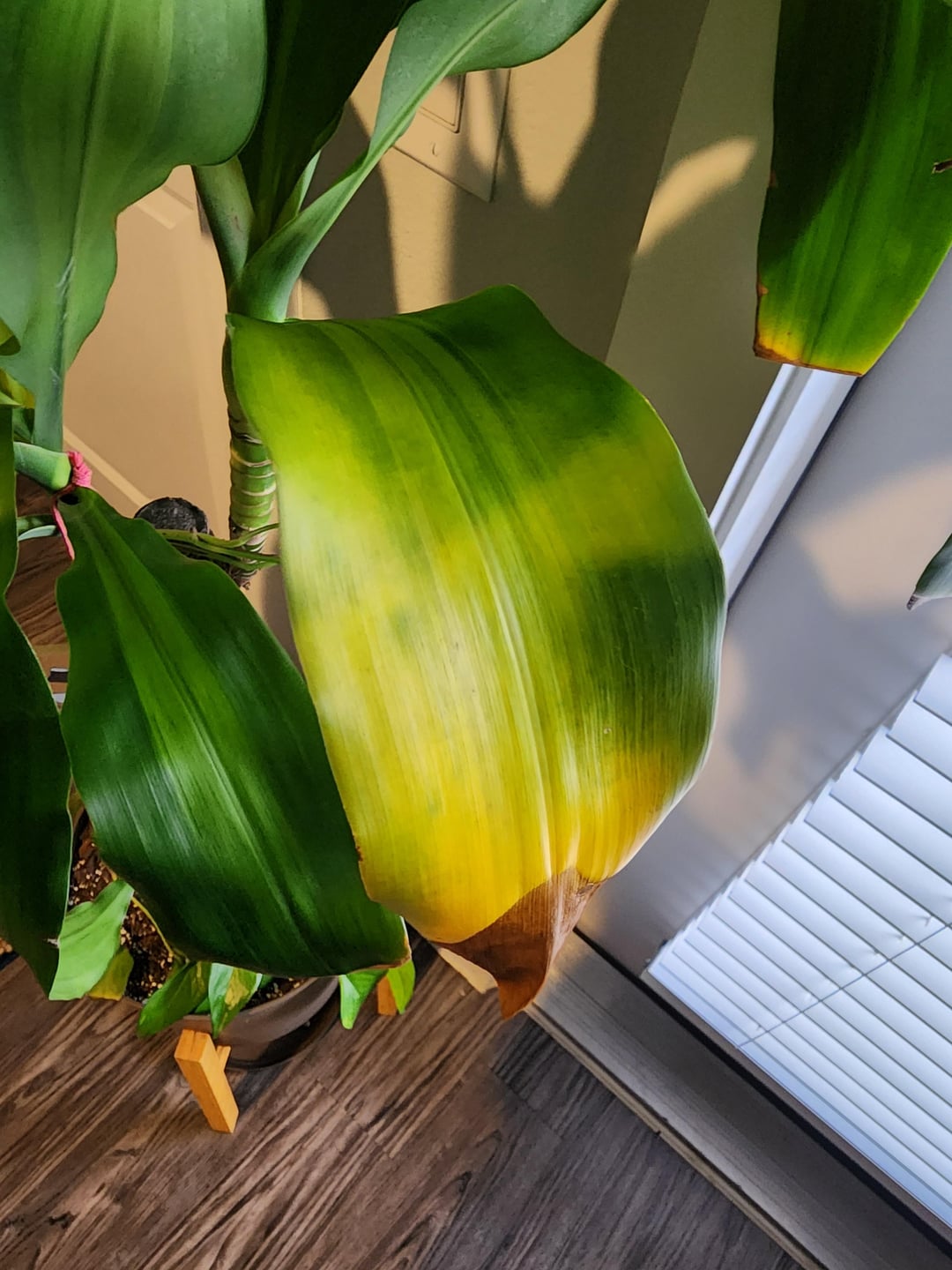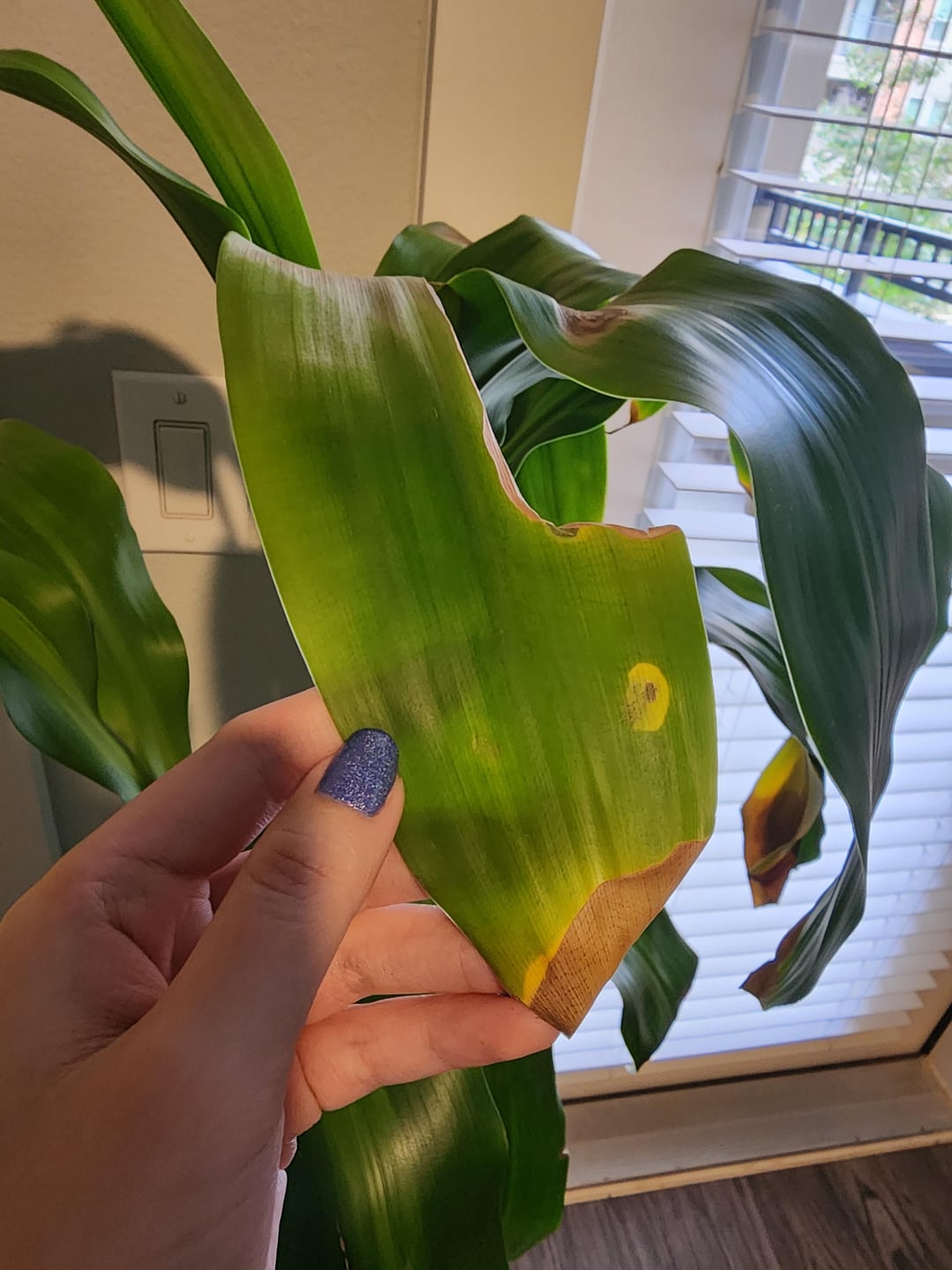 I've had this dracaena fragrans for about a year and a half now and it's recently been slowly going downhill over the past few months. I read that they can be sensitive to hard water, so I only give her filtered water that's been sitting out overnight. It's winter so I also only water once the soil is dry below two inches. She receives light from a north facing window and is not near any drafts or heaters. I repotted her when the weather got warmer here from a 10" to 12" and mixed perlite, houseplant soil, and orchid mix.