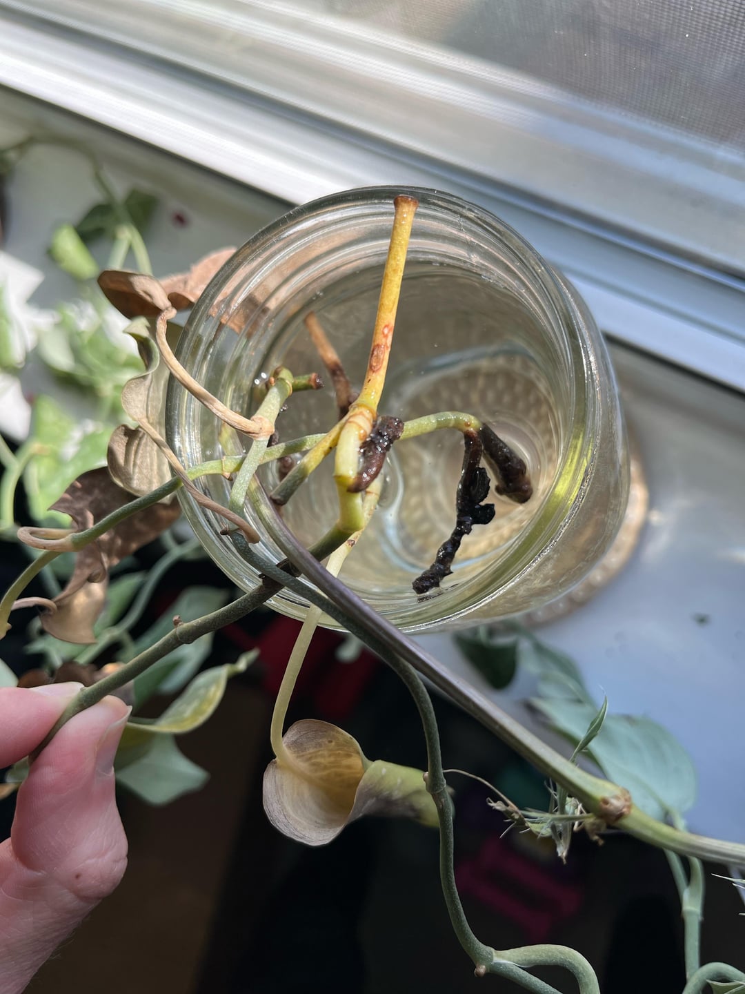 I put a cut flower stem in there from a bouquet a few days ago and THAT one is growing roots. WHAT GIVES.