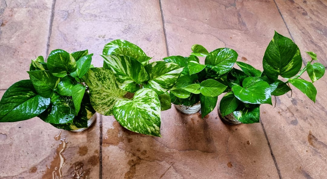 Hi guys, I found a band of wild pothos near my house and took a few clippings. These bad boys have been in water for over a month now, are they ready to repot? I'm looking to grow a large indoor pothos with multiple vines, should I put all four lots into a suitably sized pot? Use grow lights?? Any advice would be awesome, thanks!