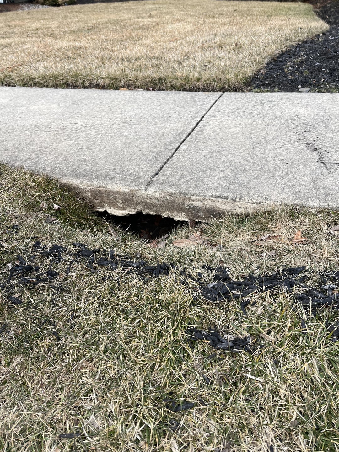 Our HOA is trying to figure out how to pay for our last event that started like this. The sidewalk eventually broke and went down into to what become a ~12 x 12’ x 12’ sink hole. Not natural, it was a overflow for our community pond that went to the lake.