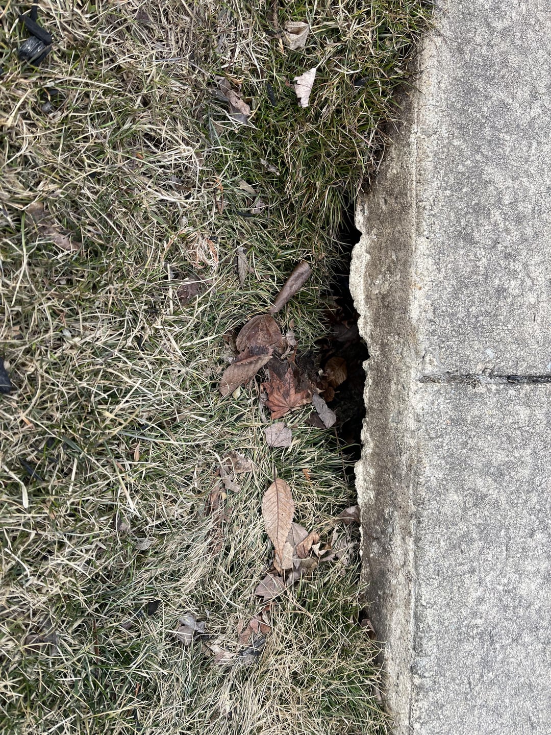 Random hole appeared a couple weeks ago and has grown since. The grass is still intact and I don’t see signs of digging, but curious if anyone has any ideas what would cause this to happen and continue under the sidewalk. I’m worried the sidewalk will crack, or a bottomless abyss will emerge causing local kids to disappear.