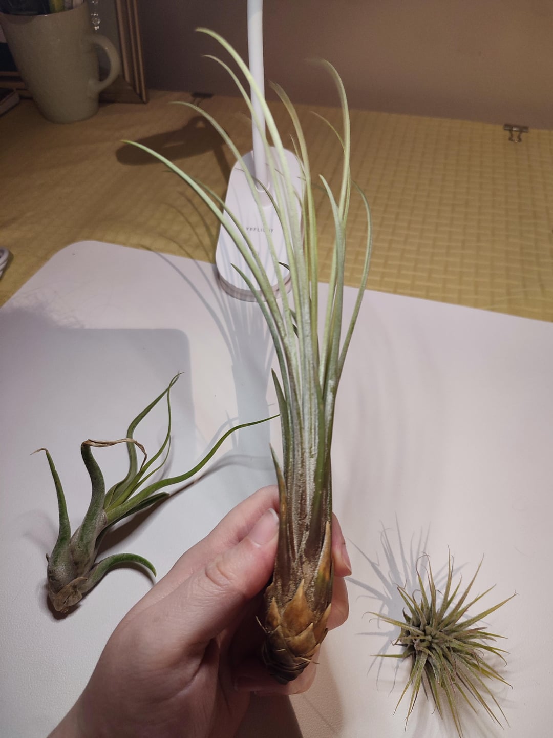 The first looks like a Medusa, and the third is a common one but I can never get the name right. Some kind of tillandsia. You can cut them or leave the brown. But if they’re dry they could use a good soak in clean water for about 5-10 mins. Then air dry and pot them where you’d like them. I think it’s a pretty good score for what you paid. They’ll recover slowly.