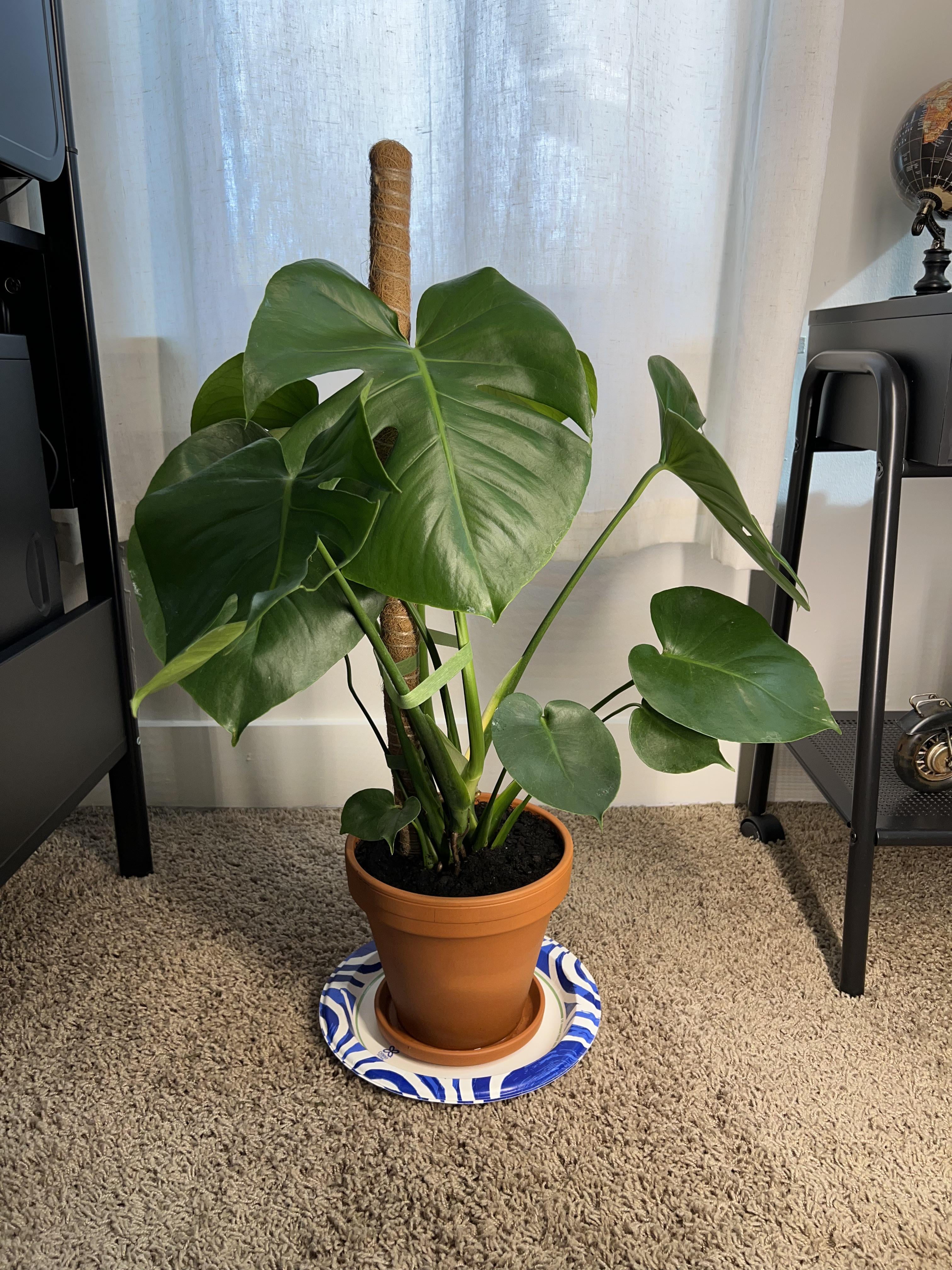 Hey there! I’m not sure if all you were looking for was advice on how to attach your monstera to the coir pole or overall advice, but I will offer a few other tips that may help your plant out!