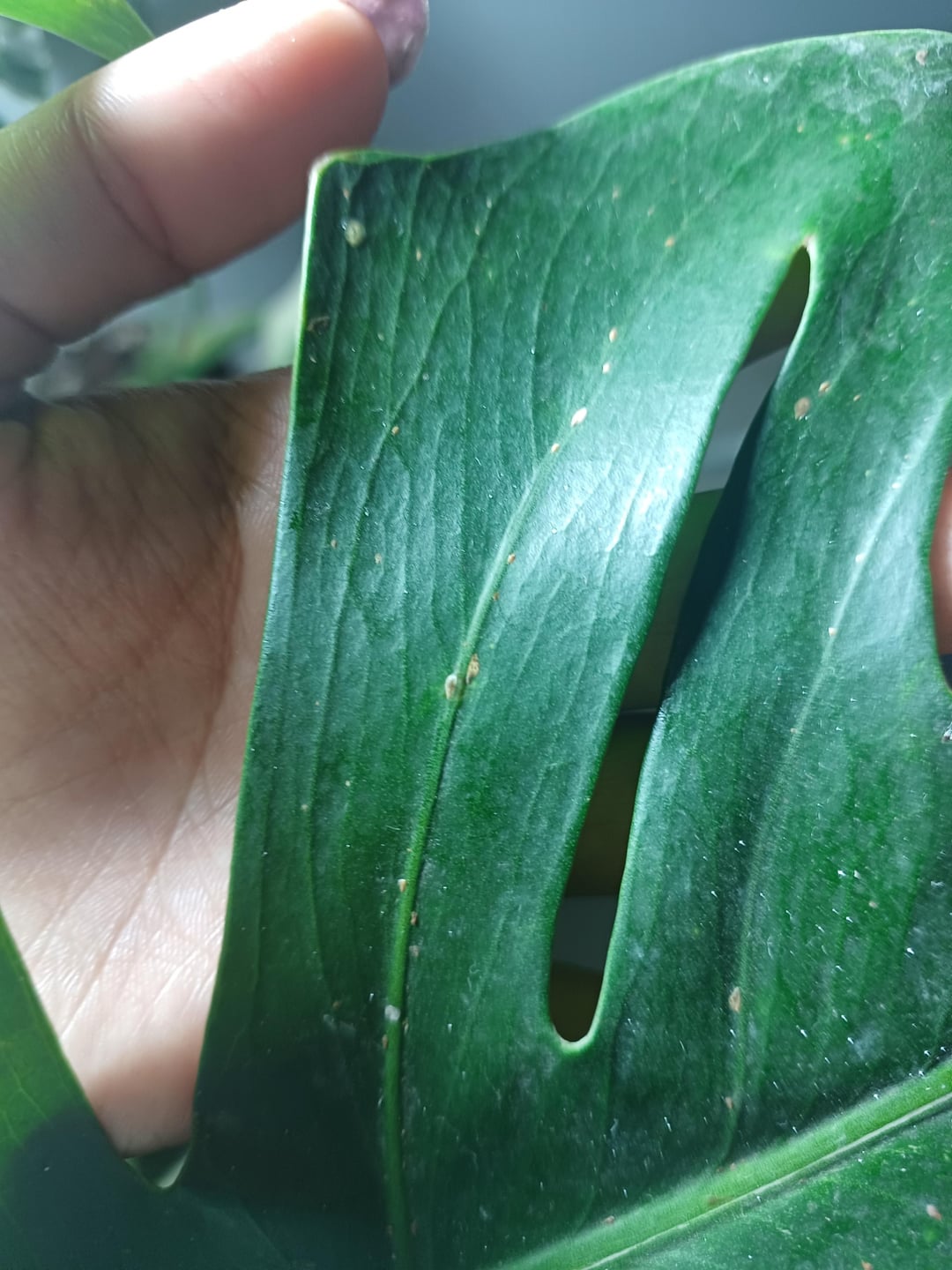 Just realised that my monstera had these specks and I'm unsure. Is it something to worry about? An insect or bug? Recieved this less than two weeks ago