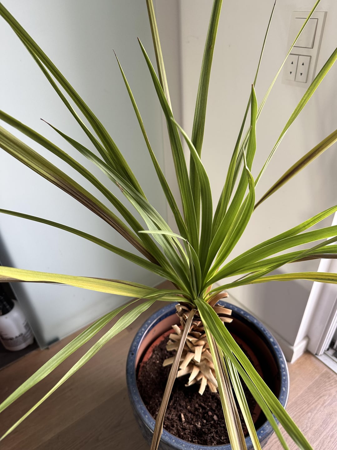 What can I do for my Cordyline. She started to loose a ton of leaves this Winter. Nearly all of the remaining leaves started to show some degree of brown tips or stripes. This is whats left. Hope I am not to late. ⏰ Soil is slightly moist bot nur wet. Cant see any critters.